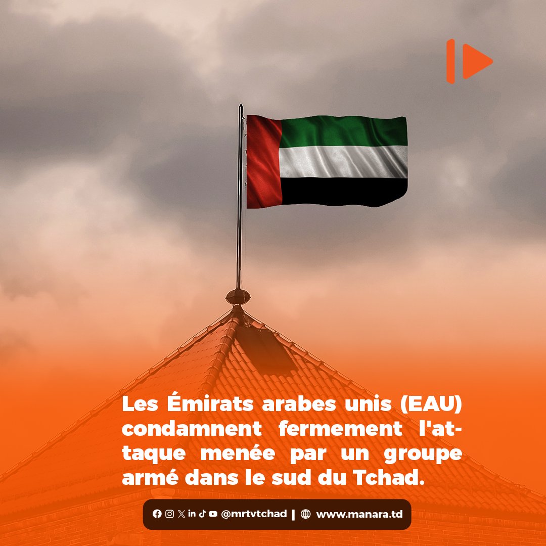 𝗗𝗜𝗣𝗟𝗢𝗠𝗔𝗧𝗜𝗘: Dans un communiqué, le Ministère des Affaires étrangères des #Émirats_Arabes_Unis (#MoFA) a condamné avec la plus grande fermeté l’attaque perpétrée par un groupe armé dans le sud du Tchad, ayant fait des morts et des blessés au sein des forcIl a réaffirmé le rejet constant des Émirats arabes unis de toutes les formes de violence, d’extrémisme et de terrorisme, tout en exprimant ses sincères condoléances aux familles des victimes et sa solidarité avec le Gouvernement et le Peuple Tchadiens.