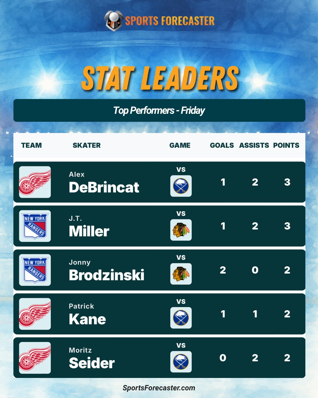 🏒 STAT LEADERS ➡️ Top performers from Friday!