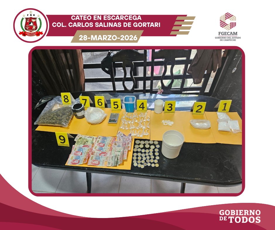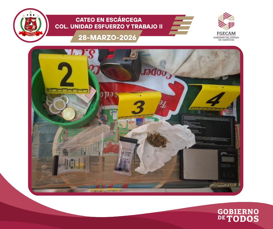 @fgecam informa que dio cumplimiento a órdenes de cateo en 3 inmuebles ubicados en las colonias Lic. Carlos Salinas de Gortari y Unidad Esfuerzo y Trabajo II, en la ciudad de Escárcega, como parte de una investigación por delitos contra la salud en su modalidad de narcomenudeo