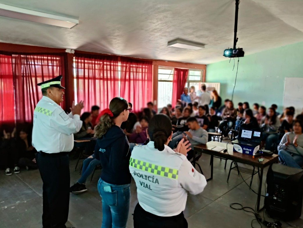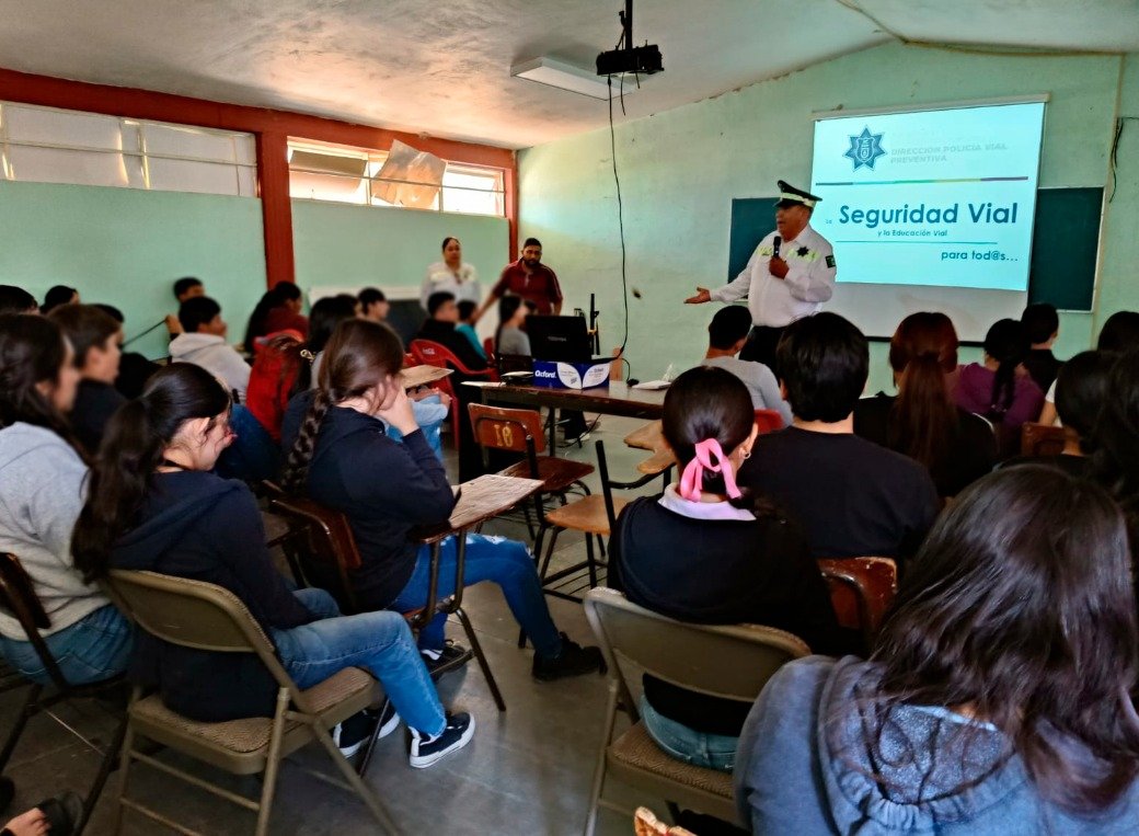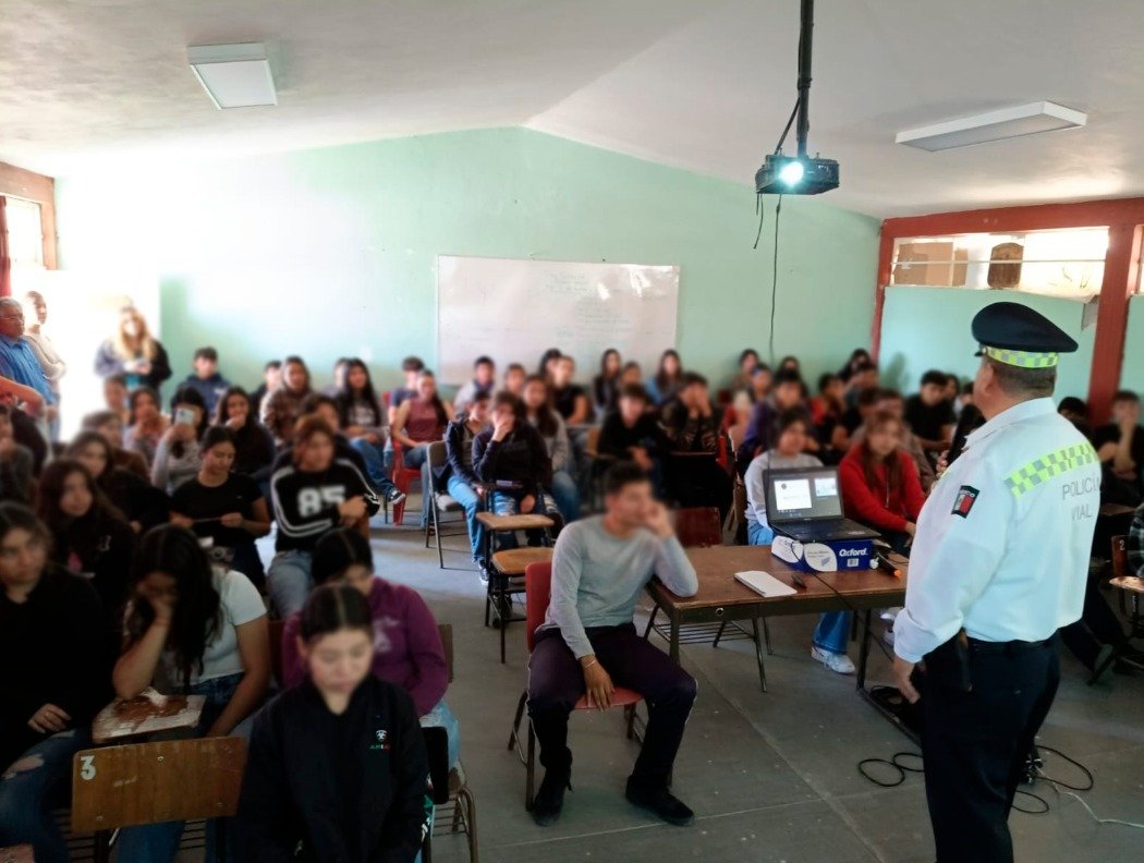Elementos de la Policía Vial impartieron una conferencia sobre educación vial y reglamento de tránsito a estudiantes de la Preparatoria Lic. Agustín Yáñez, con el objetivo de fomentar una cultura de respeto a las normas de movilidad y prevenir accidentes.goo.su/MFzs9BP