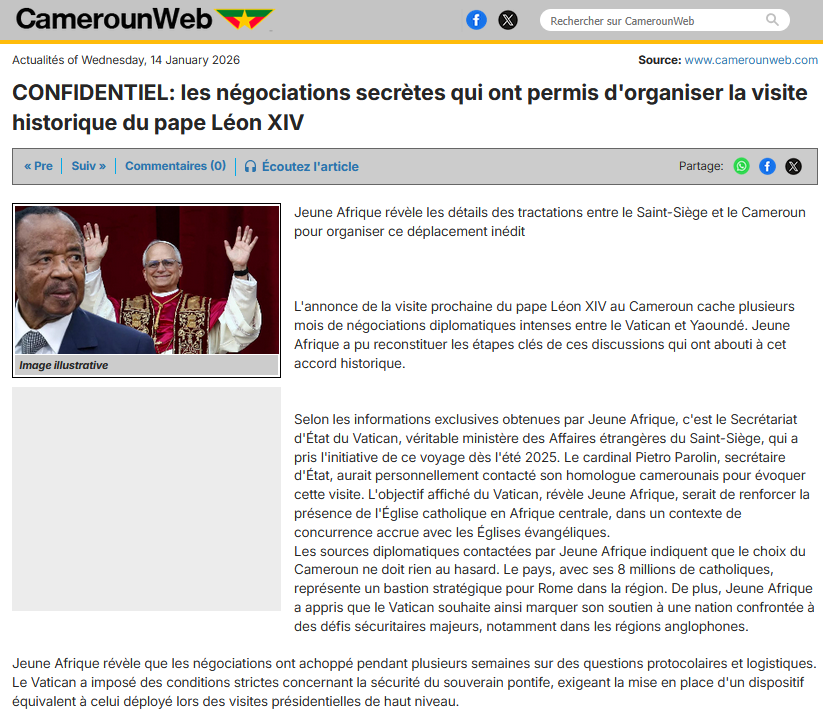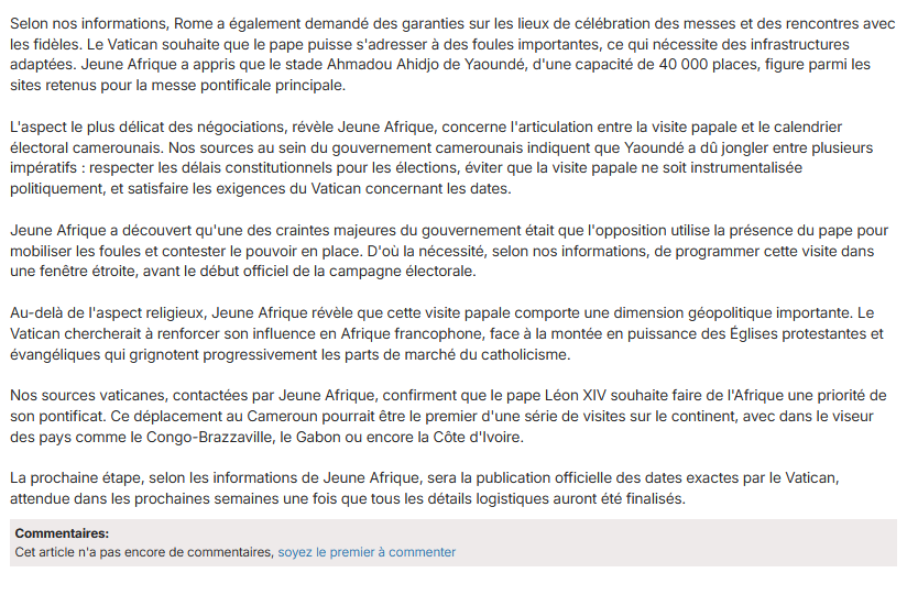@actucameroun @jeune_afrique Cependant, le média @CamerounWeb qui se distingue par sa propension à décrypter les informations, a publié ce jour un article inspiré de #JA et de leurs propres sources, qui met en évidence la pierre d'achoppement des lors des négociations entre parties...