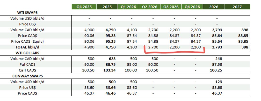 Though the focus is on NG, Peyto has lots of unhedged ~WTI linked liquids vols to hedge here for the 2026. Can easily 2x the hedges for Q2 to Q4, ensuring even higher guaranteed IP profitability on 2H 2025 and 2026 wells. Deck IRRs assume $60WTI. 🍻