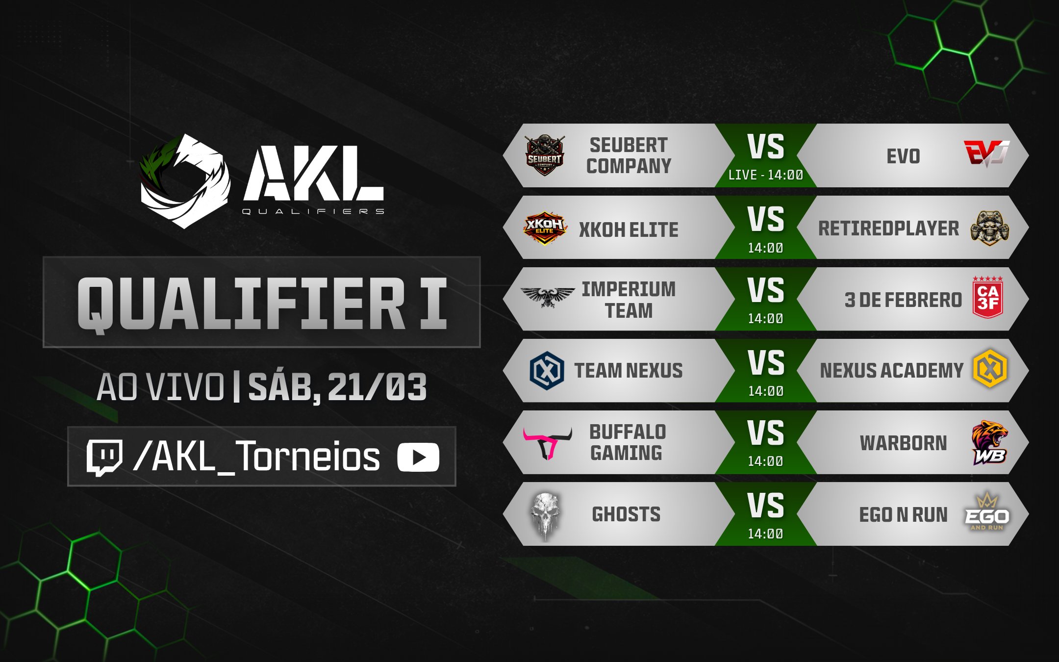 AKL Oficial @AKL_Torneios · Mar 21 Hoje é dia Qualifier! O Stage II começa às 14h e estaremos AO VIVO nos canais 🟣 twitch.tv/akl_torneios 🔴 youtube.com/AKL_Torneios Venha torcer e assistir com a gente! #CallOfDuty #COD #AKLYg 1 3 146
