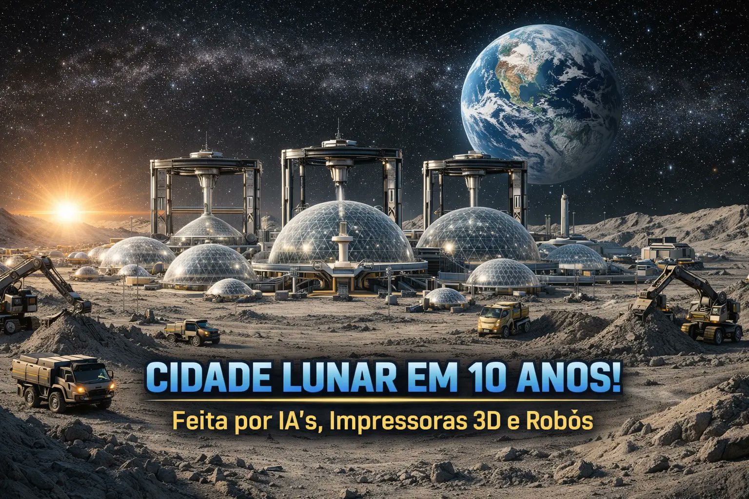 🚀 Uma cidade construída por robôs na Lua.