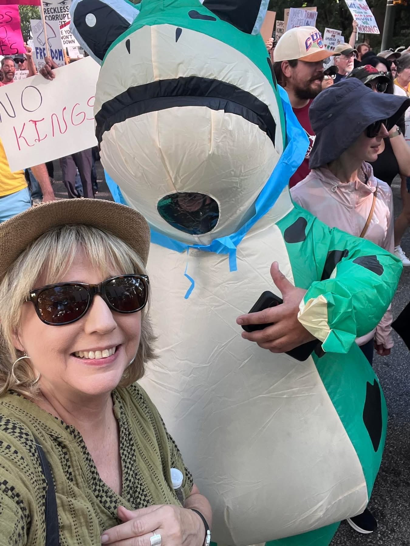 DowntownDonnaMerlino🌈🇮🇹✌🏼 @DowntownDonna69 · Oct 18, 2025 From a good ol’ friend Linda B. in South Carolina 😘💋 Great to see the South showing up! FIGHT FACISM !! No 👑 Kings SAVE DEMOCRACY NOW!! #Resist #FightFascism #F*ckTheOrangeMussolizlk 3 133