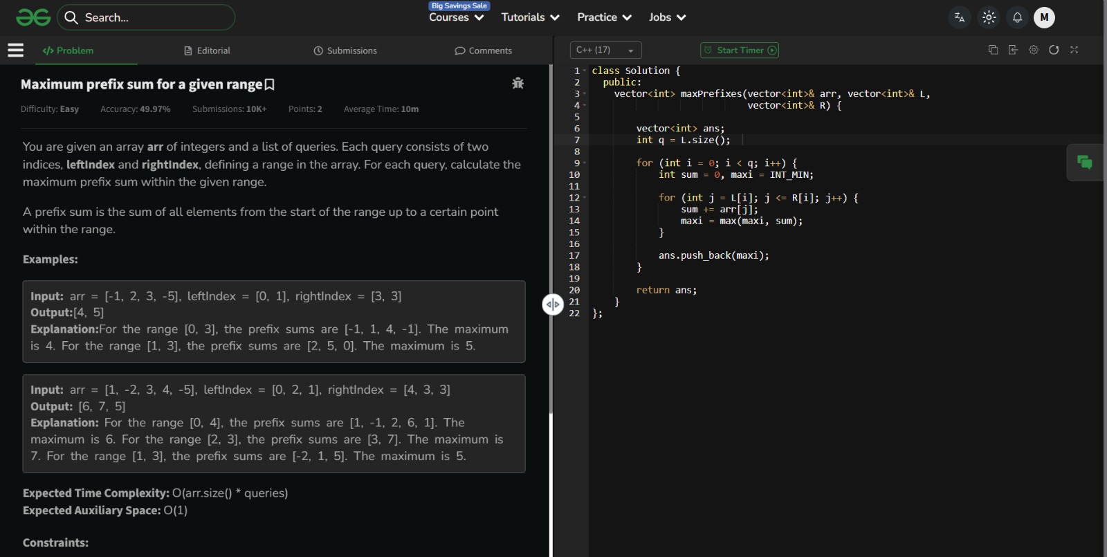 Solved: Maximum Prefix Sum for a Given Range