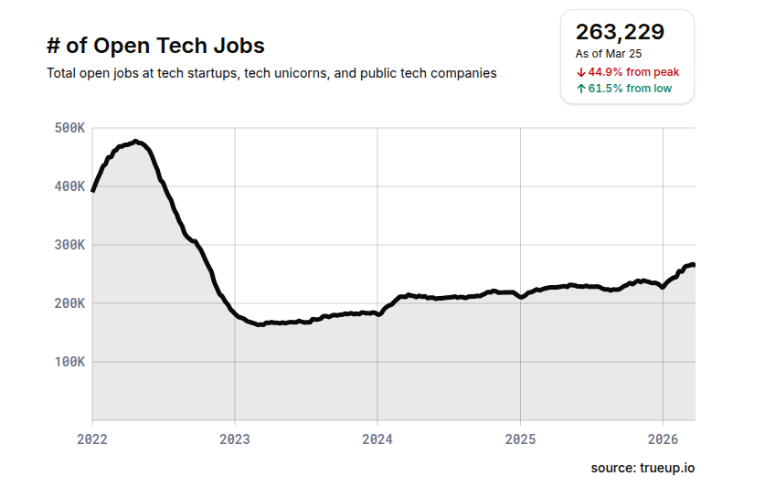 Idk why or how, but the number of tech jobs is on an upside trend 😎😎 #coding #programming #startupeC