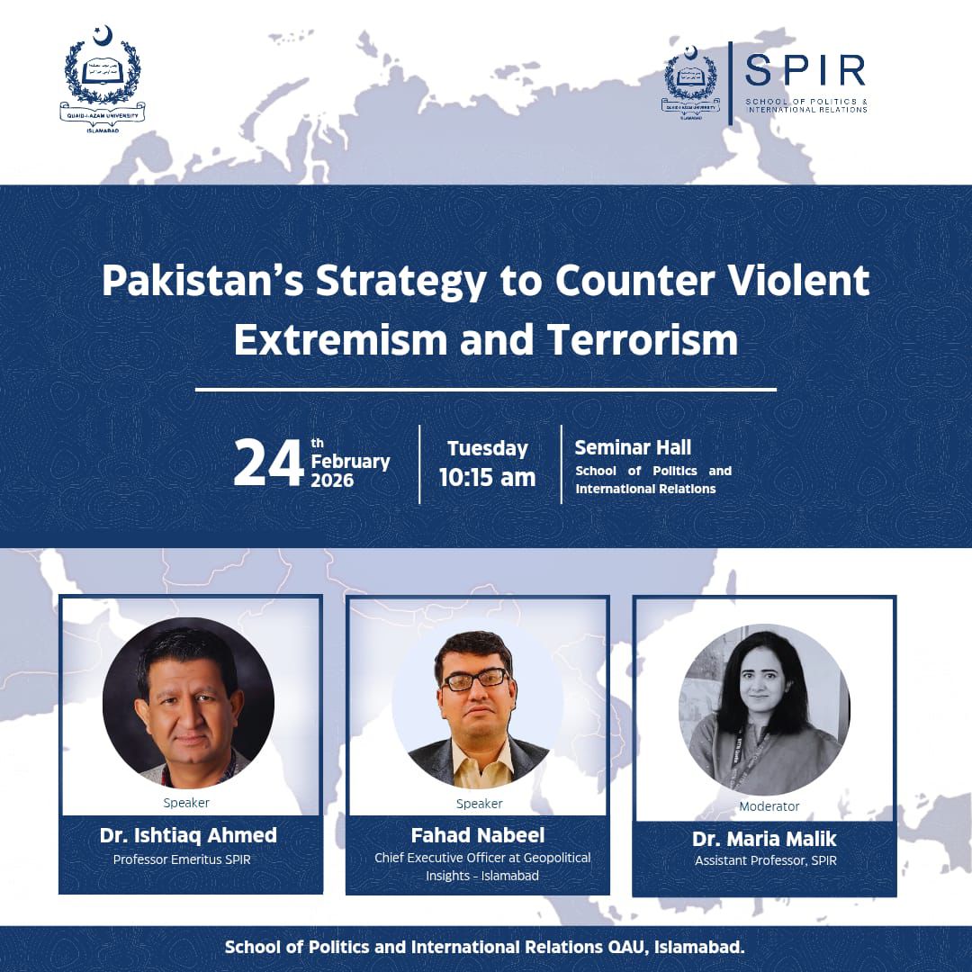 SPIR, will host a seminar on “Pakistan’s Strategy to Counter Violent Extremism and Terrorism” on 24 February 2026.