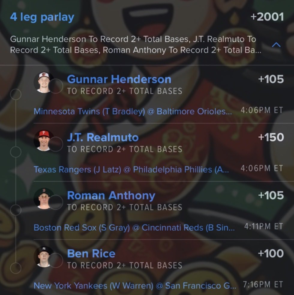 Remember anyone you think is getting a HR/2Hits will get 2B obviously then right, bet smart y’all. Im not here to ridicule, I’m here to help 🫡