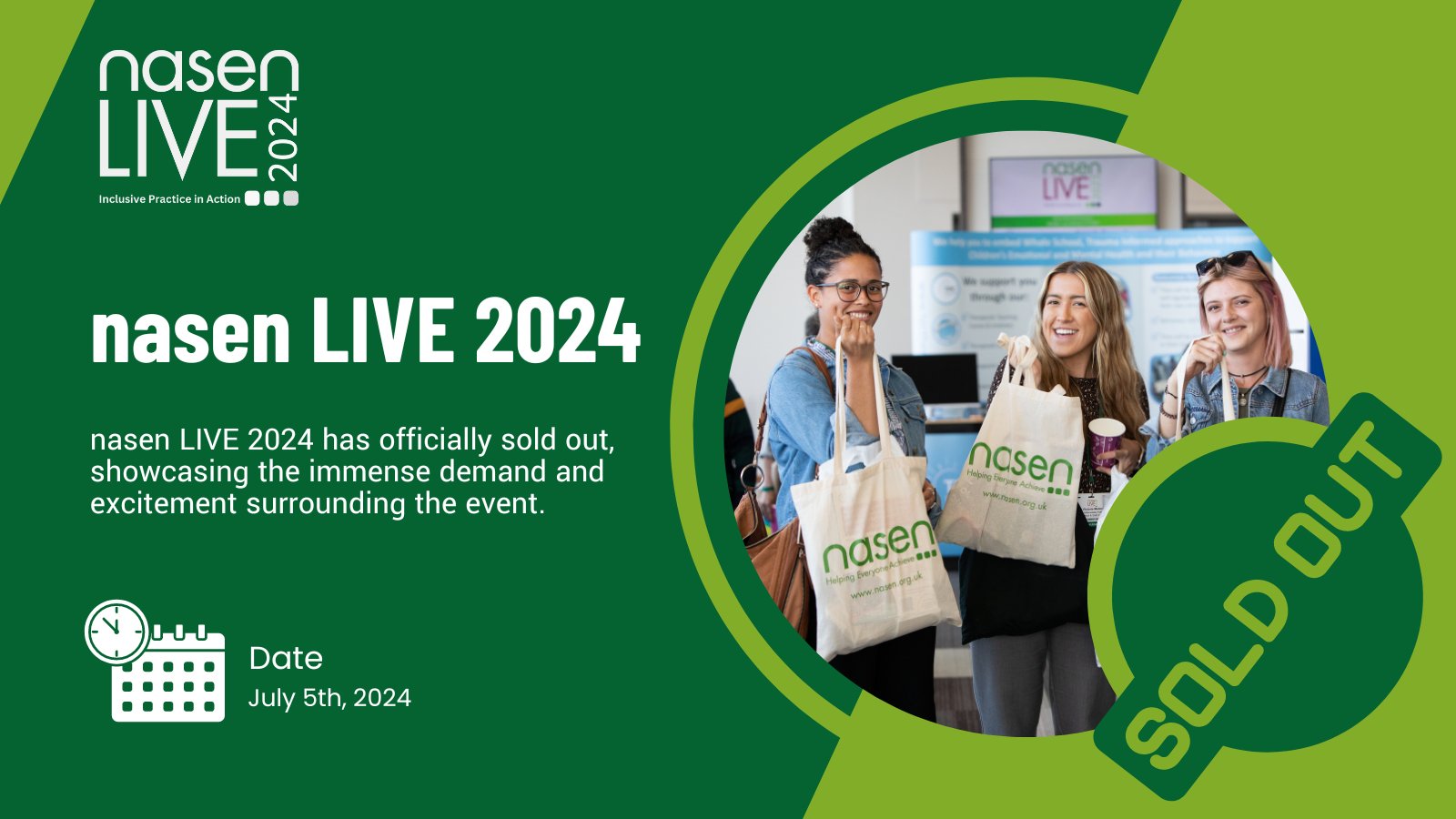 😱 The entirety of nasen LIVE’s 2024 ticket allocation has now been SOLD! Managed to secure a ticket? Then you can look forward to an unmissable SEND event! If you didn't manage to secure a ticket, you can join our waiting list here:ow.ly/eO1Y50RnO1ER�� #nasenLIVE #SoldOumX