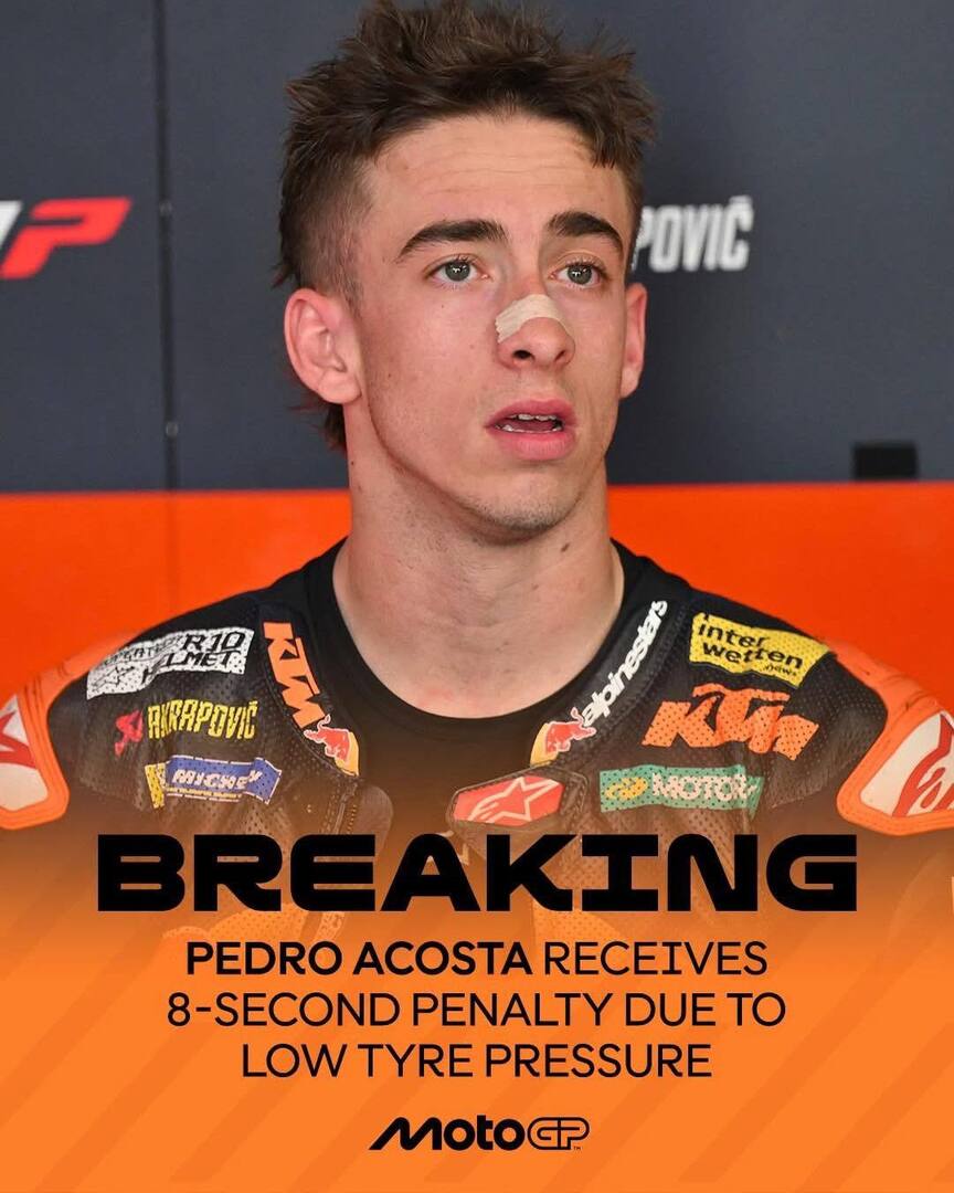 Pedro Acosta terkena penalty akibat tekanan ban, yang membuatnya harus turun ke P8.