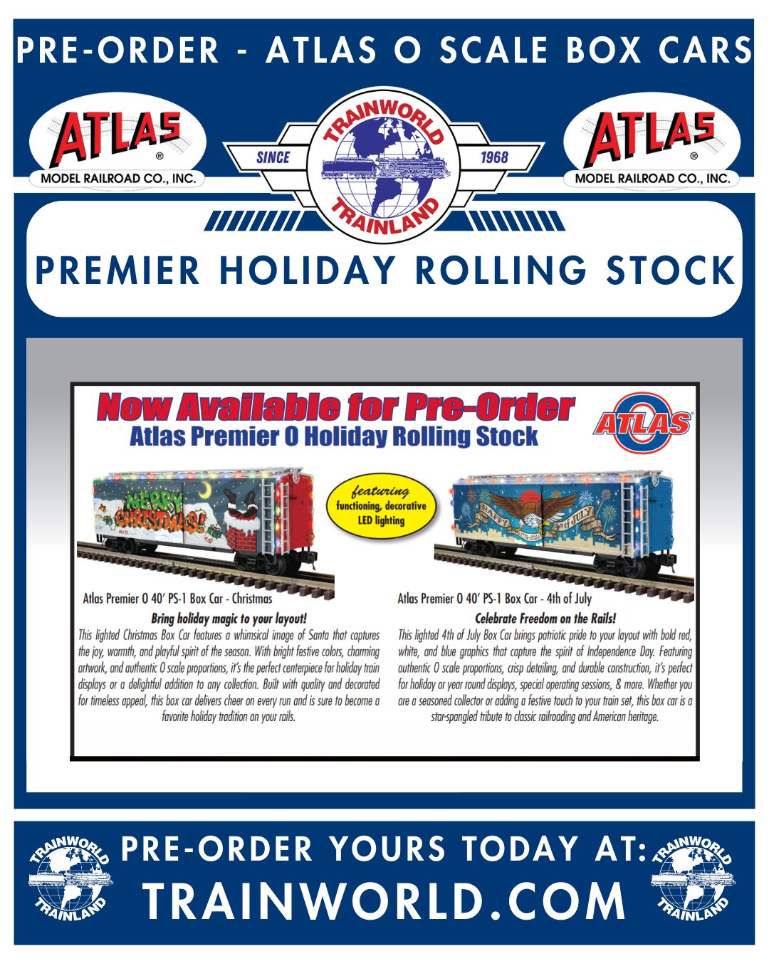 Atlas O Scale Premier 40' PS-1 Rolling Stocks (Christmas🎄 and 4th of July🎆) are on Pre-Order!trainworld.com/catalogsearch/…4M