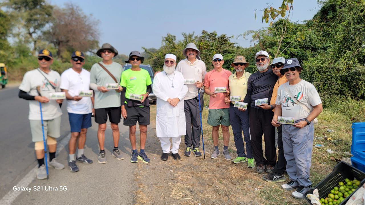 A significant highlight was the visit to Hanifa School, Borsad, which serves underprivileged children with exemplary discipline and clarity of mission. An interactive session between the walkers and students revealed curiosity, confidence, and attentiveness reinforcing the walk’s deeper aim of connecting generations and inspiring young minds.