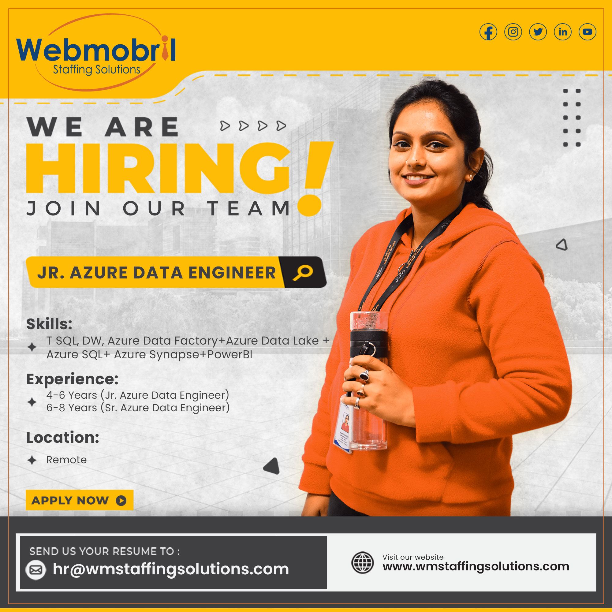 Are you a Azure Data Engineer looking for your next challenge? We're searching for someone who's creative, collaborative, and excited about building cutting-edge tech solutions. Apply now and let's see what we can create together!