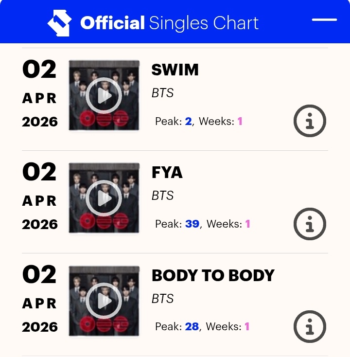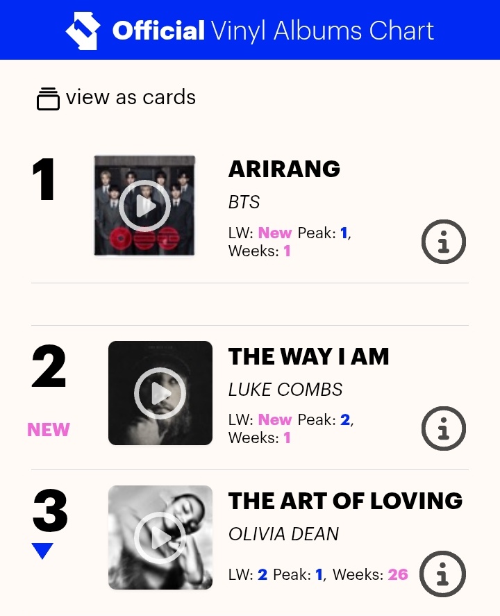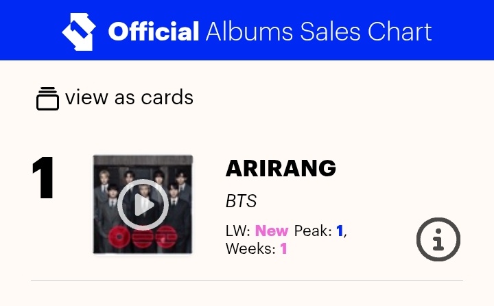#BTS DOMINATES every single UK Official Album Charts with "ARIRANG" this week: