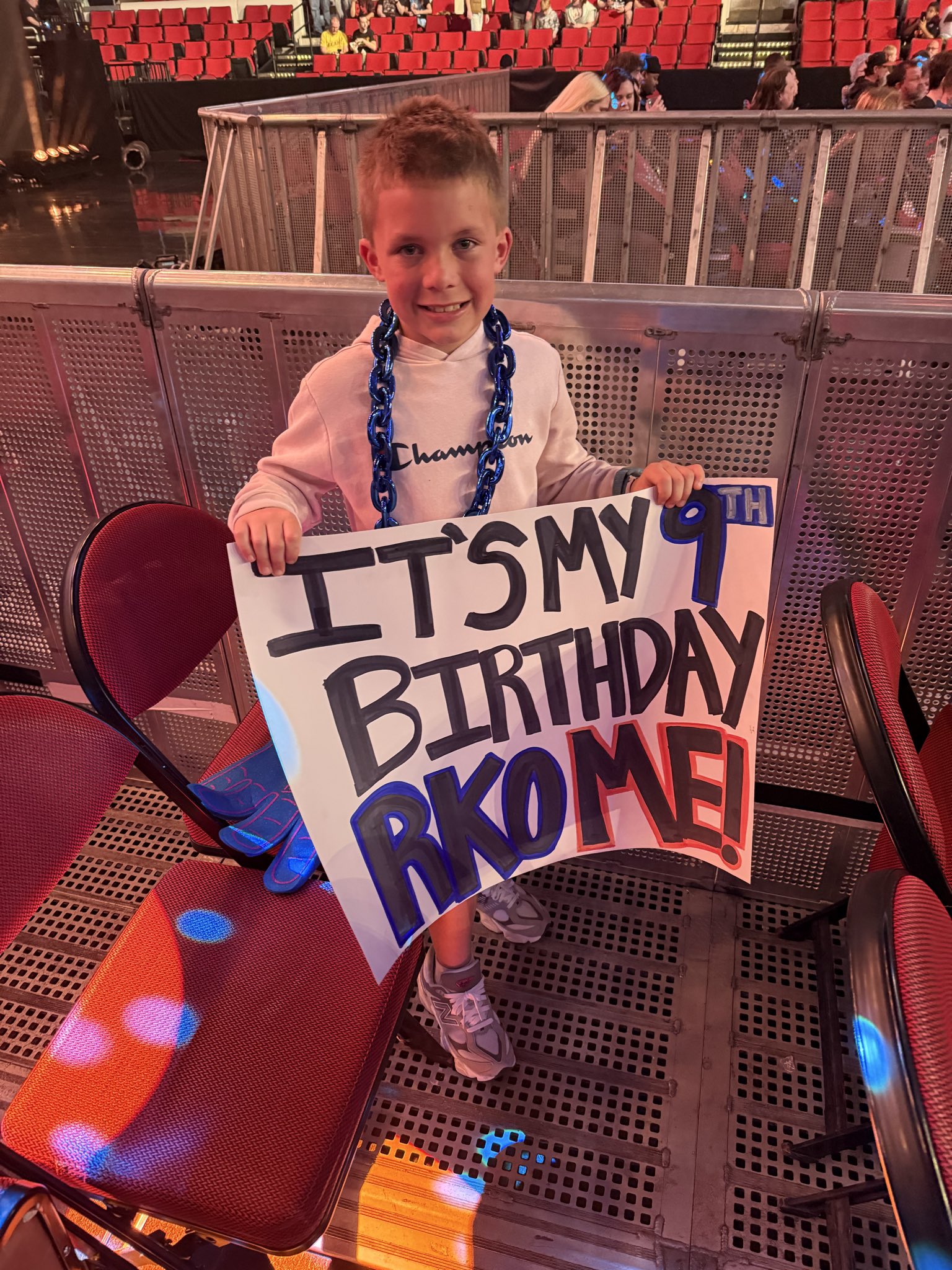 @WWE@RandyOrton Staff took my guy’s sign on his BIRTHDAY and first show ever — before he ever sat down. He wasn’t going to block a camera angle. Literally had to give his sign up after this. Come on!! #boo#heelturn