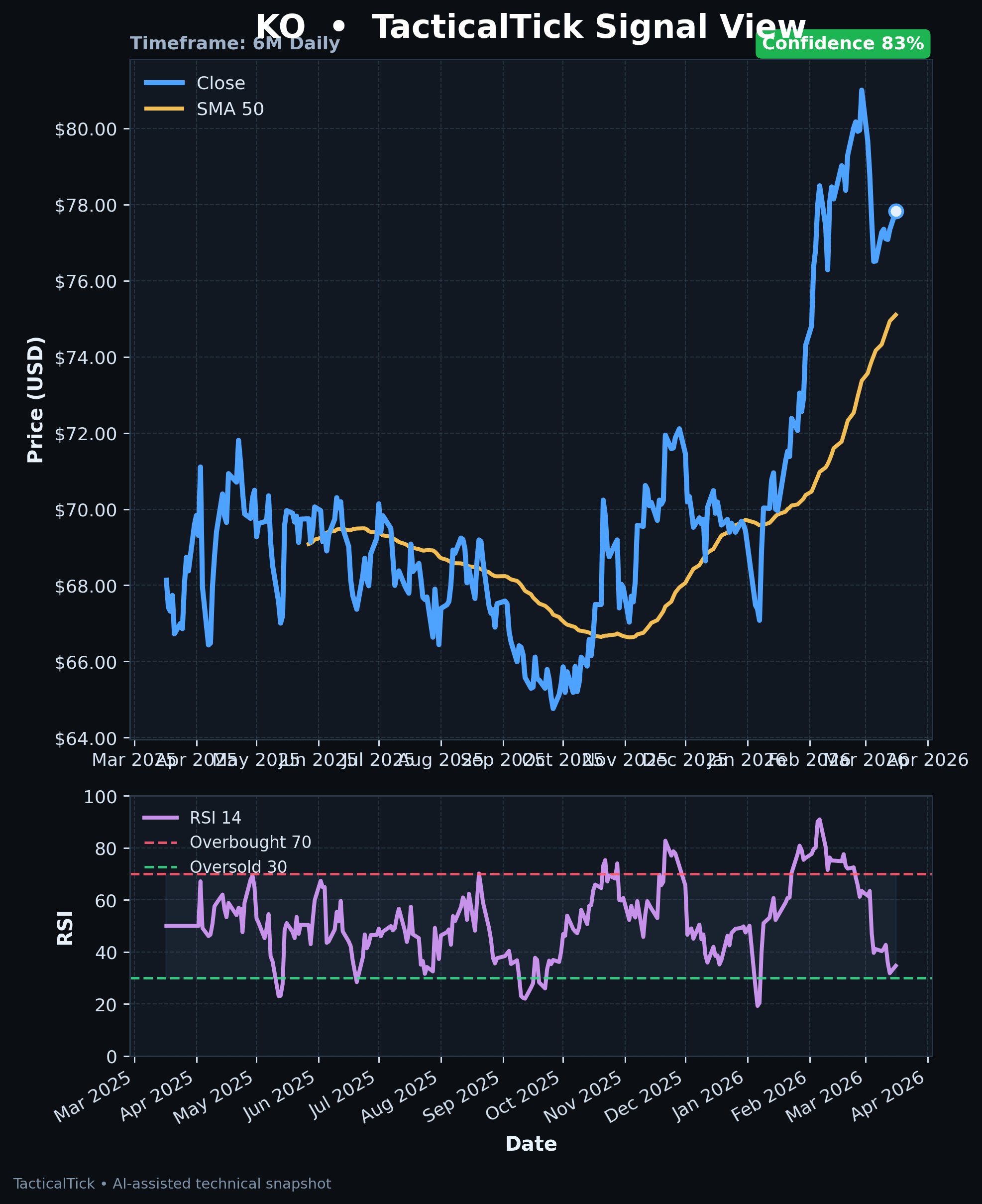 $KO stuck under $78 for a month. This is a bearish consolidation. Break below $77.50 and it slides toward $76. Who's fading this failed breakout? #KO#TacticalTick