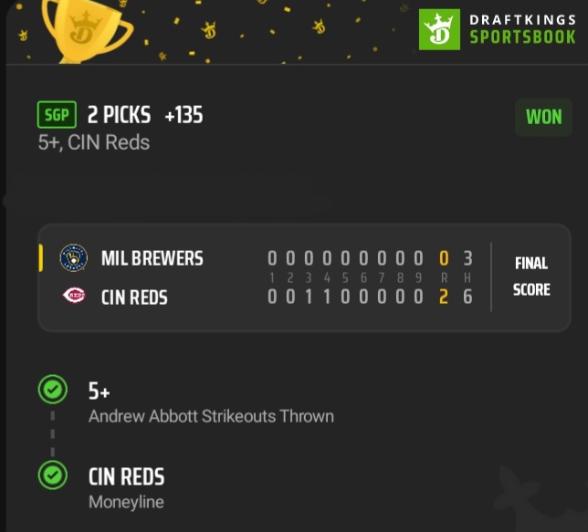 🔹️2-leg lay Abbott 5 K's/CIN ML (+135)