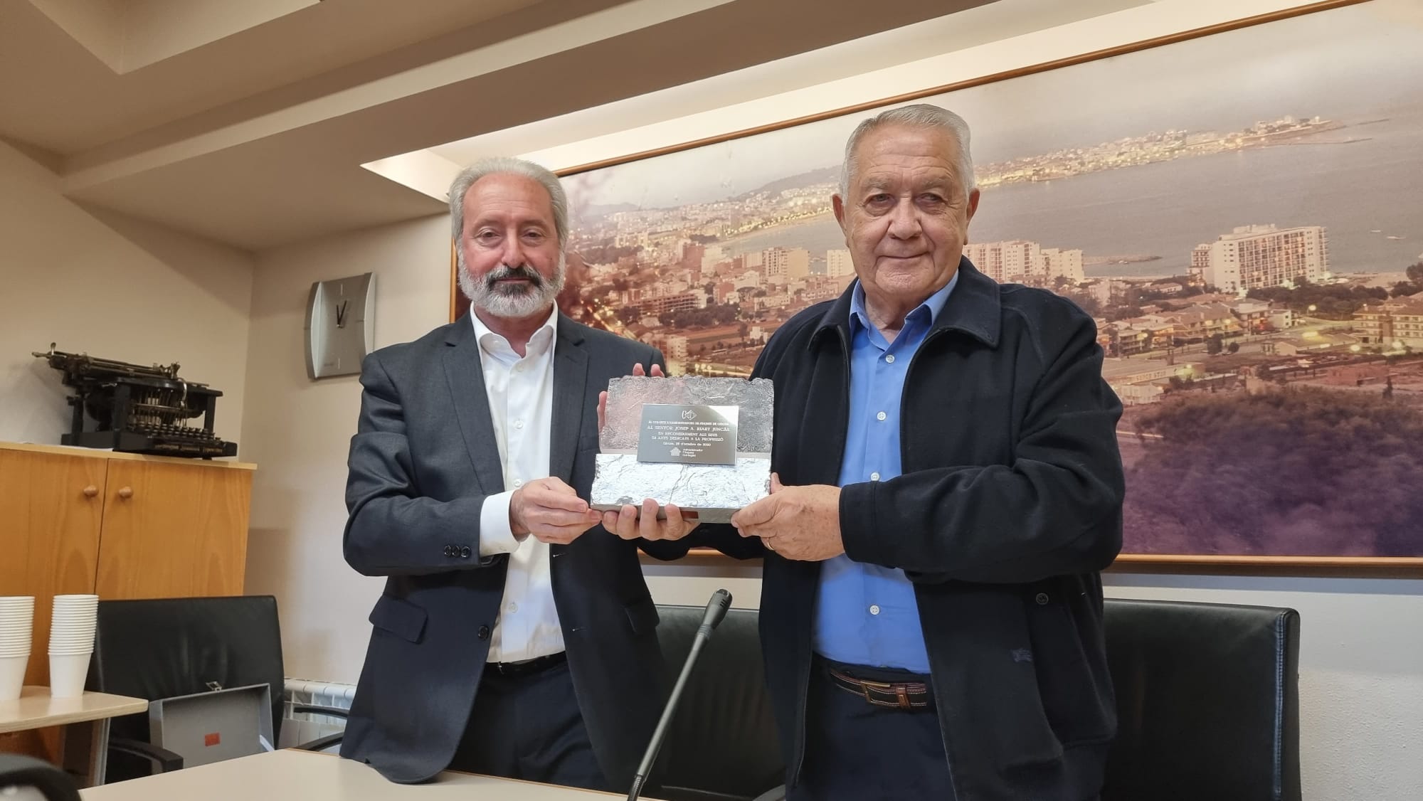 El #CAFGI fa entrega de la placa dels 54 anys de vida col·legial al Sr. Josep A. Riart Juncàs, #AFcol·legiat de St. Antoni de Calonge.