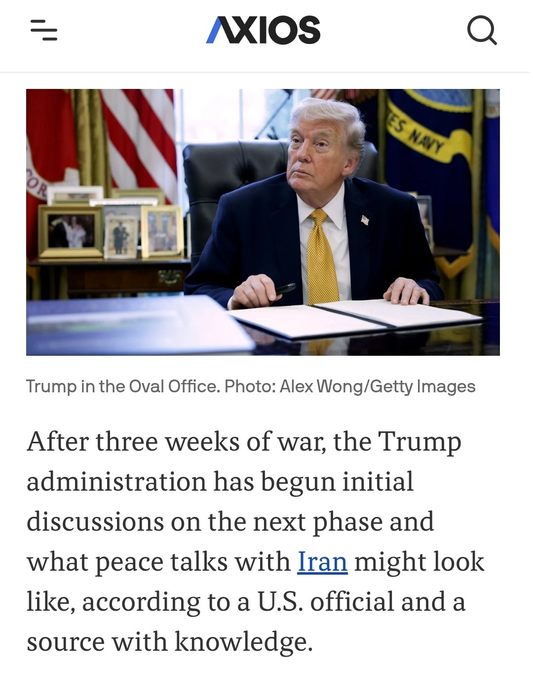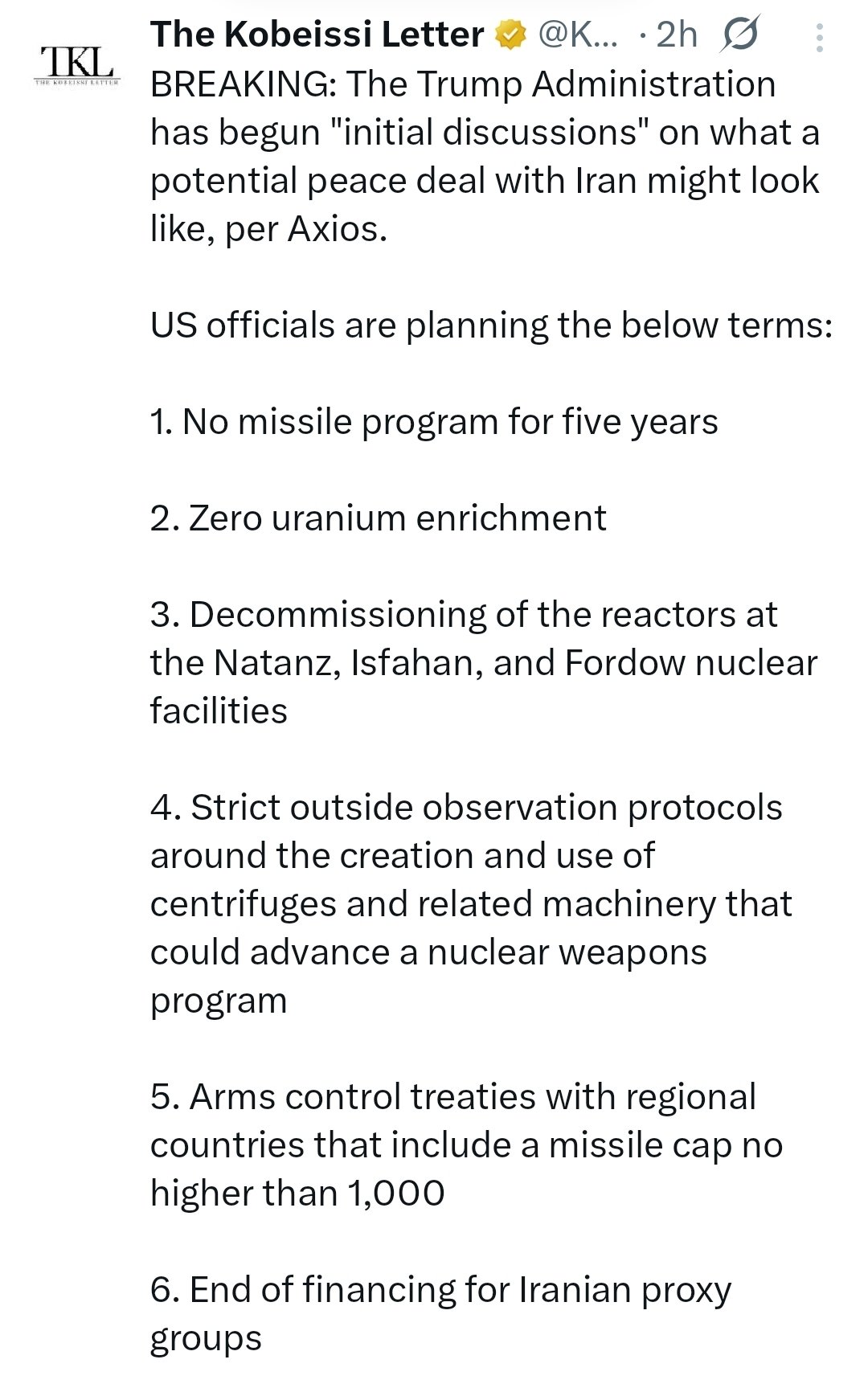 *IRANIAN DEMANDS INCLUDE CEASEFIRE, NO WAR RESUMPTION: AXIOS
