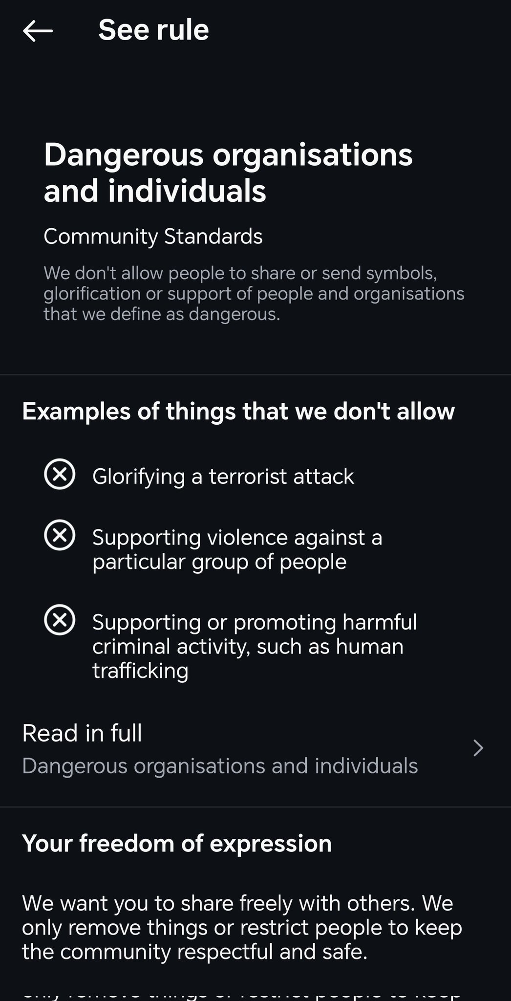 I then get a warning that "The story may contain glorification or support of people and organisations that we define as dangerous"