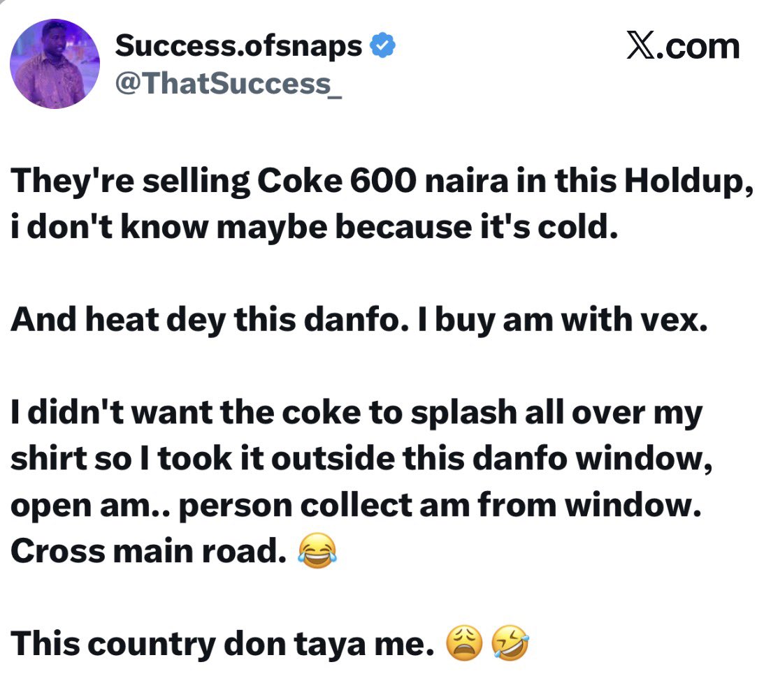 Man shares hilarious experience of how he lost his cold drink to sn@tcher in traffic