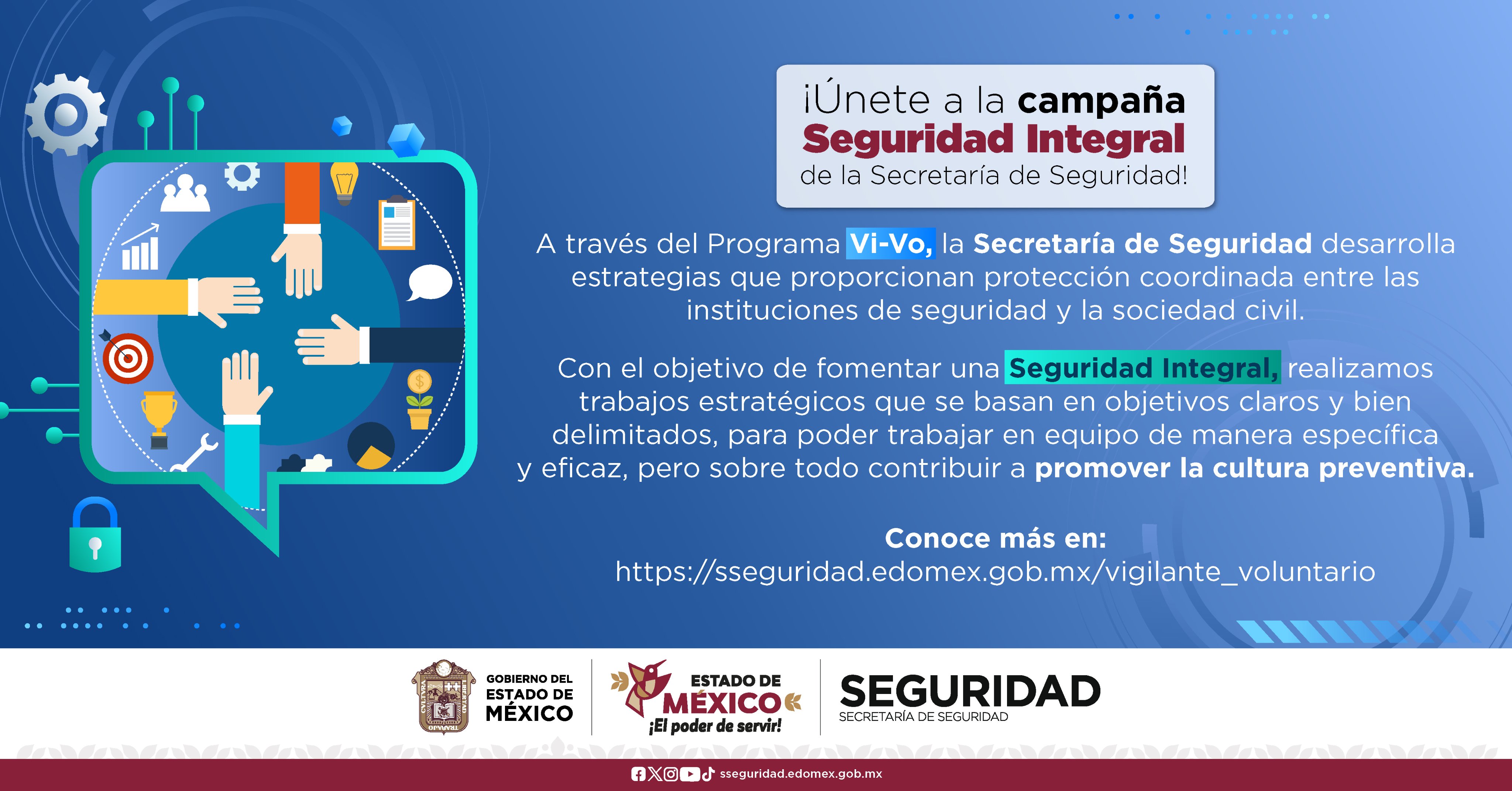 Te invitamos a ser parte de la campaña #SeguridadIntegral, a través del programa de Vigilante-Voluntario (#VI-Vo) podrás ser parte de la promoción de la cultura de la #Prevención.