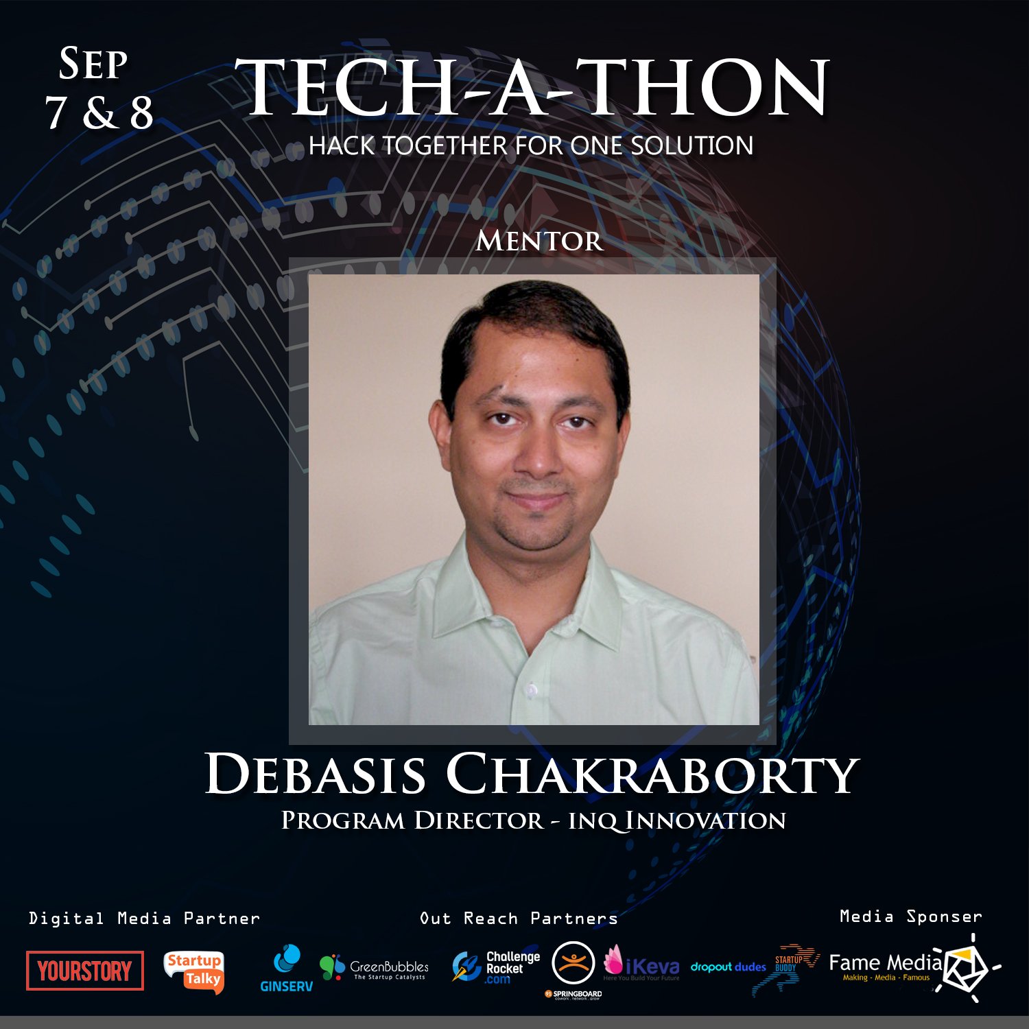Stop worrying about who would be there to guide you through #Tech-A-Thon. We have got it covered it for you. We would like to present one of our #mentors, Mr. Debasis Chakraborty, #Program Director at inQ Innovation.