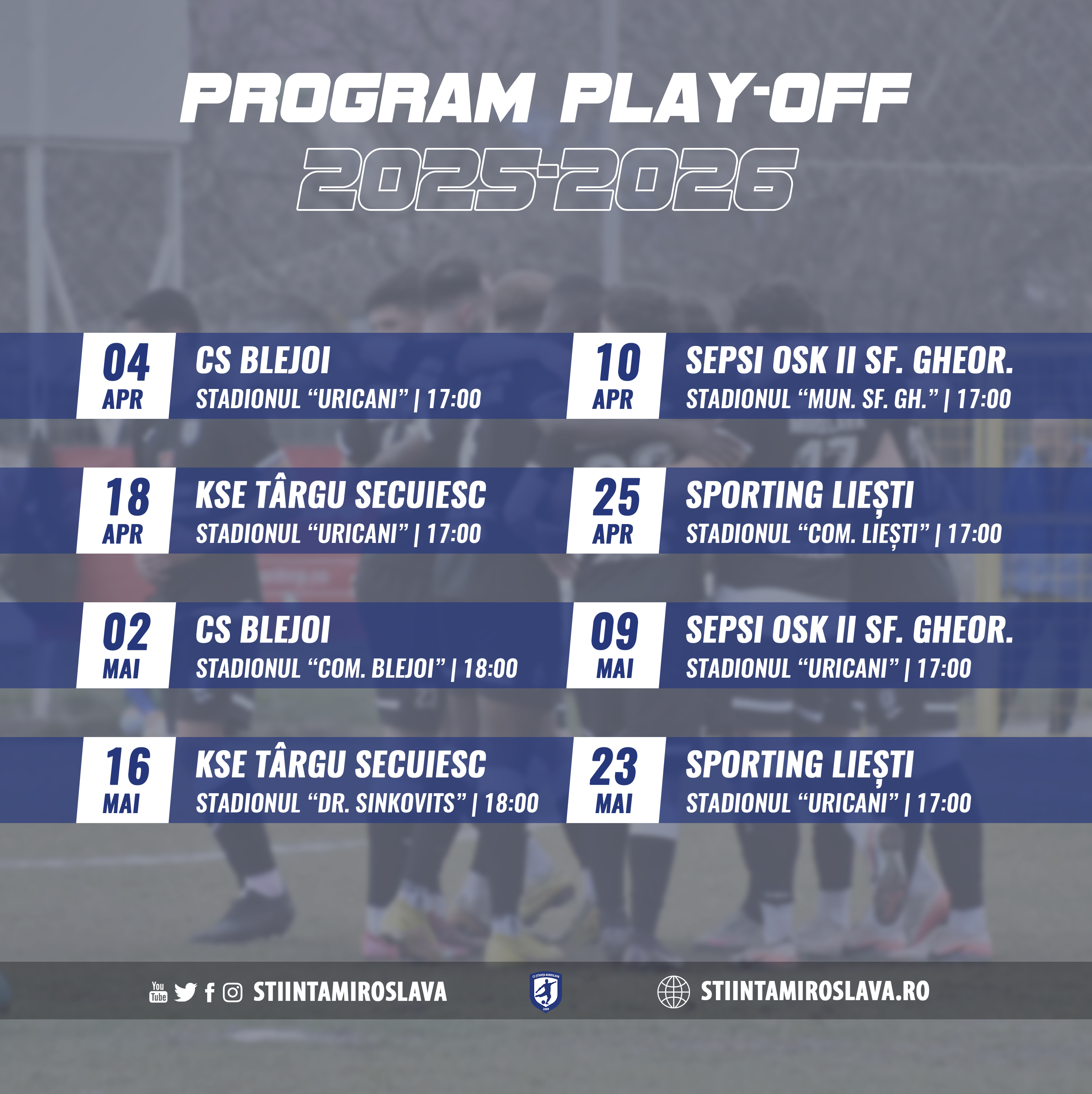 Alb-albaștrii și-au câștigat locul printre cele mai bune echipe din Seria 1 și urmează partea decisivă a sezonului! În play-off vom juca tur și retur împotriva celor mai puternice formații din Seria 2: