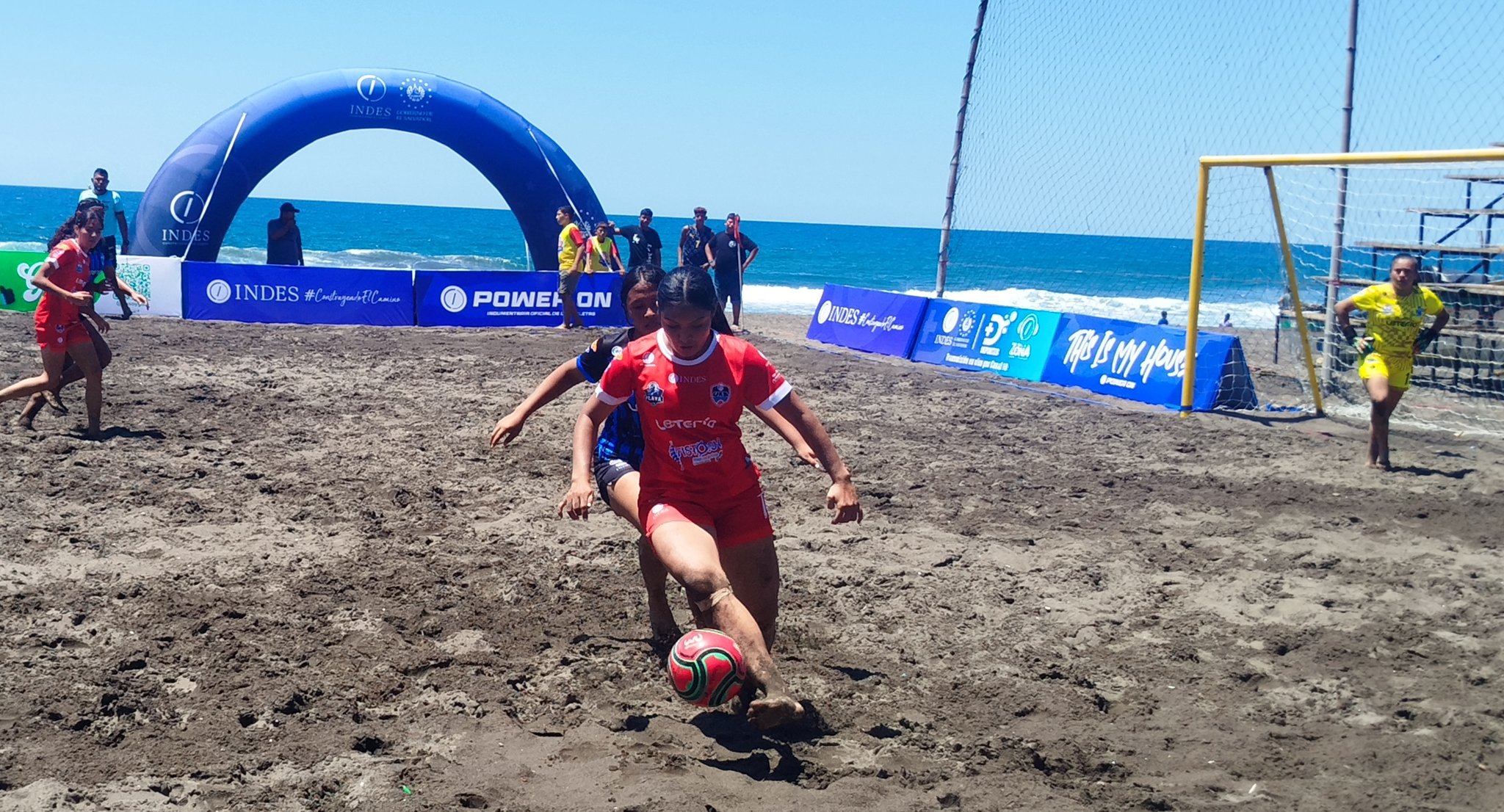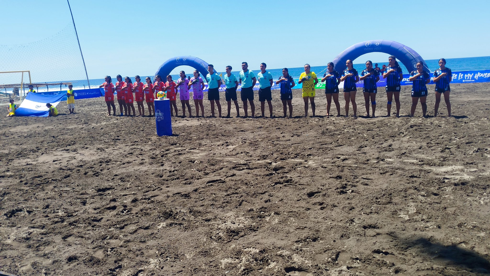 #DeDeportes l Ya juegan, en categoría femenina, San Marcelino y la UES, juego inicial clasificatorio a la Liga de Fútbol Playa Copa Indes.