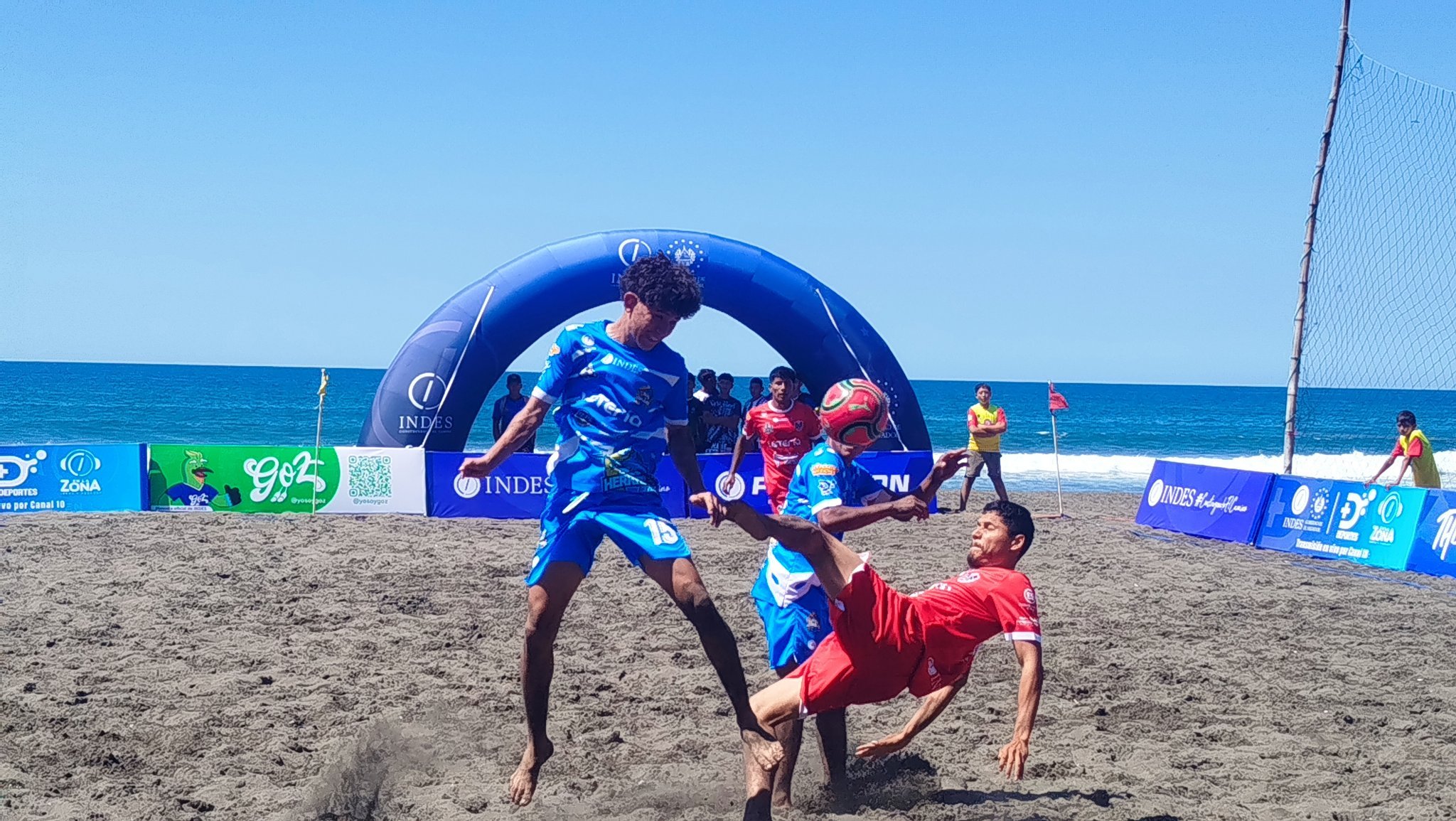 #DeDeportes l Al inicio del segundo periodo, San Marcelino se impone 2-1 a la UES en el juego inicial clasificatorio a la Liga de Fútbol Playa Copa Indes.