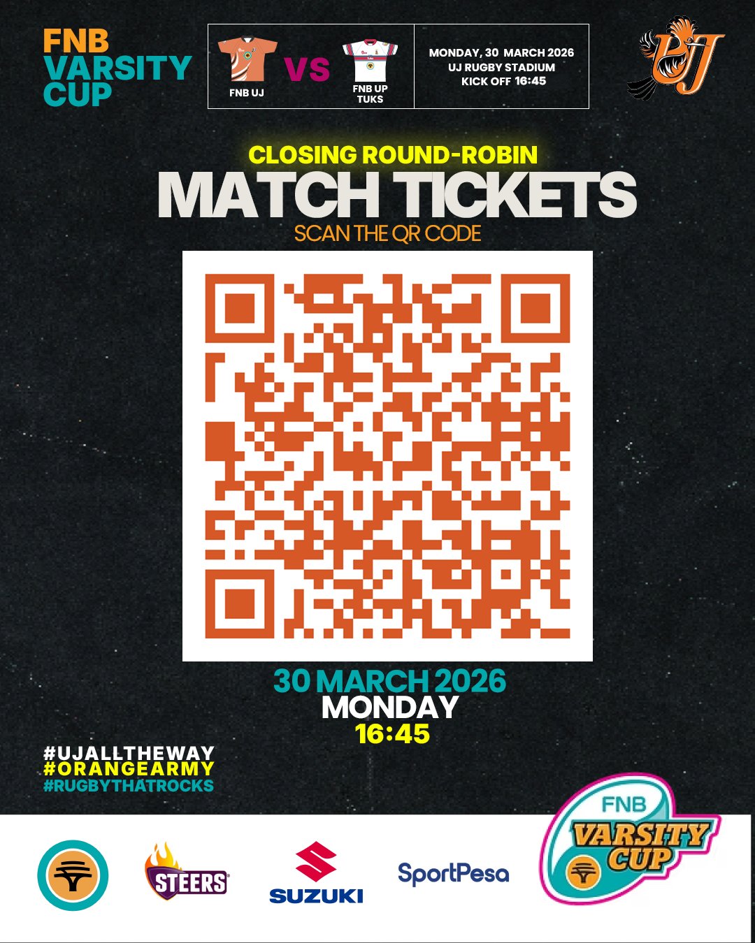 Our FNB UJ Rugby team is back at home for the final Round-Robin clash, and the stakes couldn’t be higher. We need every single member of the #OrangeArmy in the stands to carry the boys over the line and into th://t.co/y1TDVrigqq