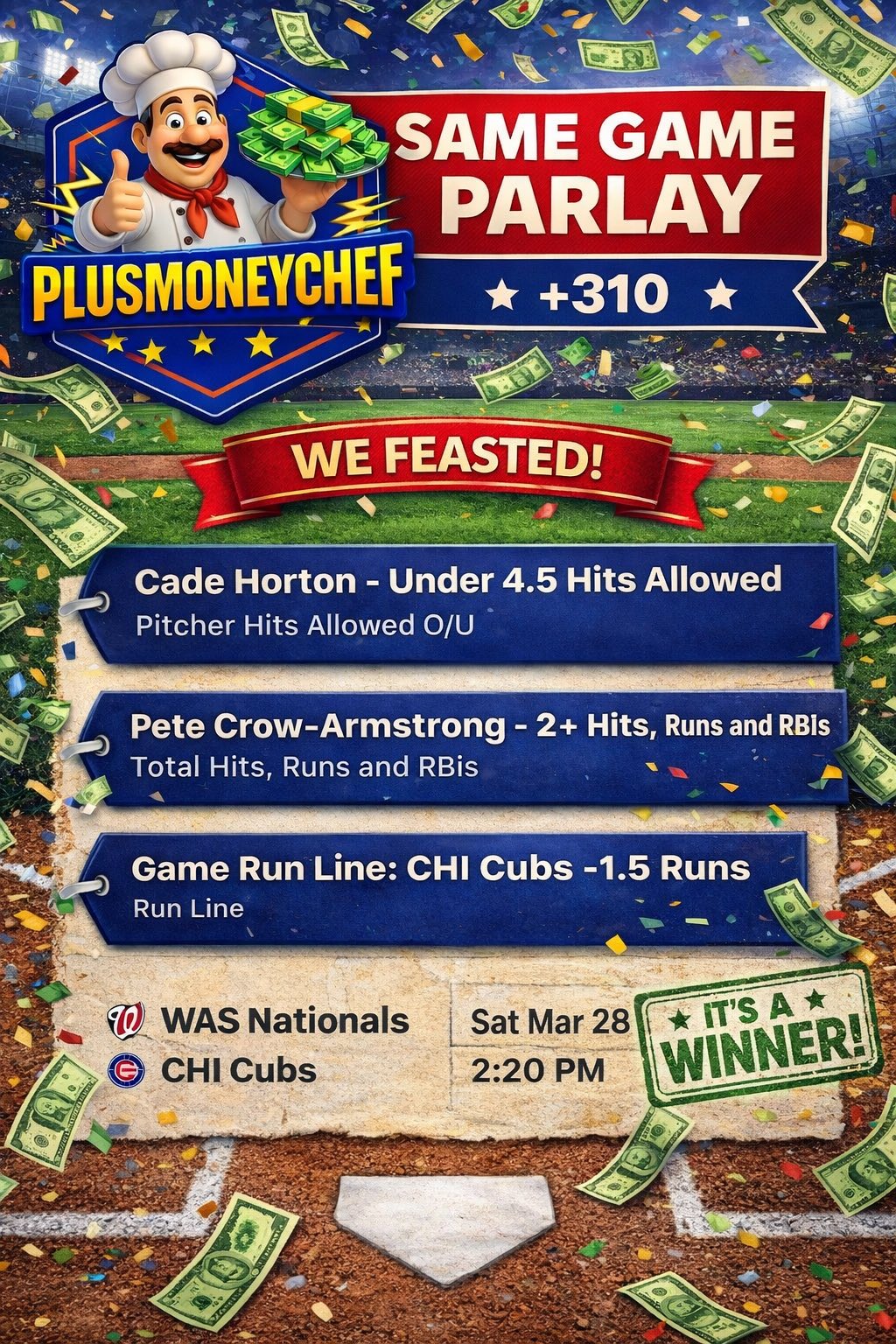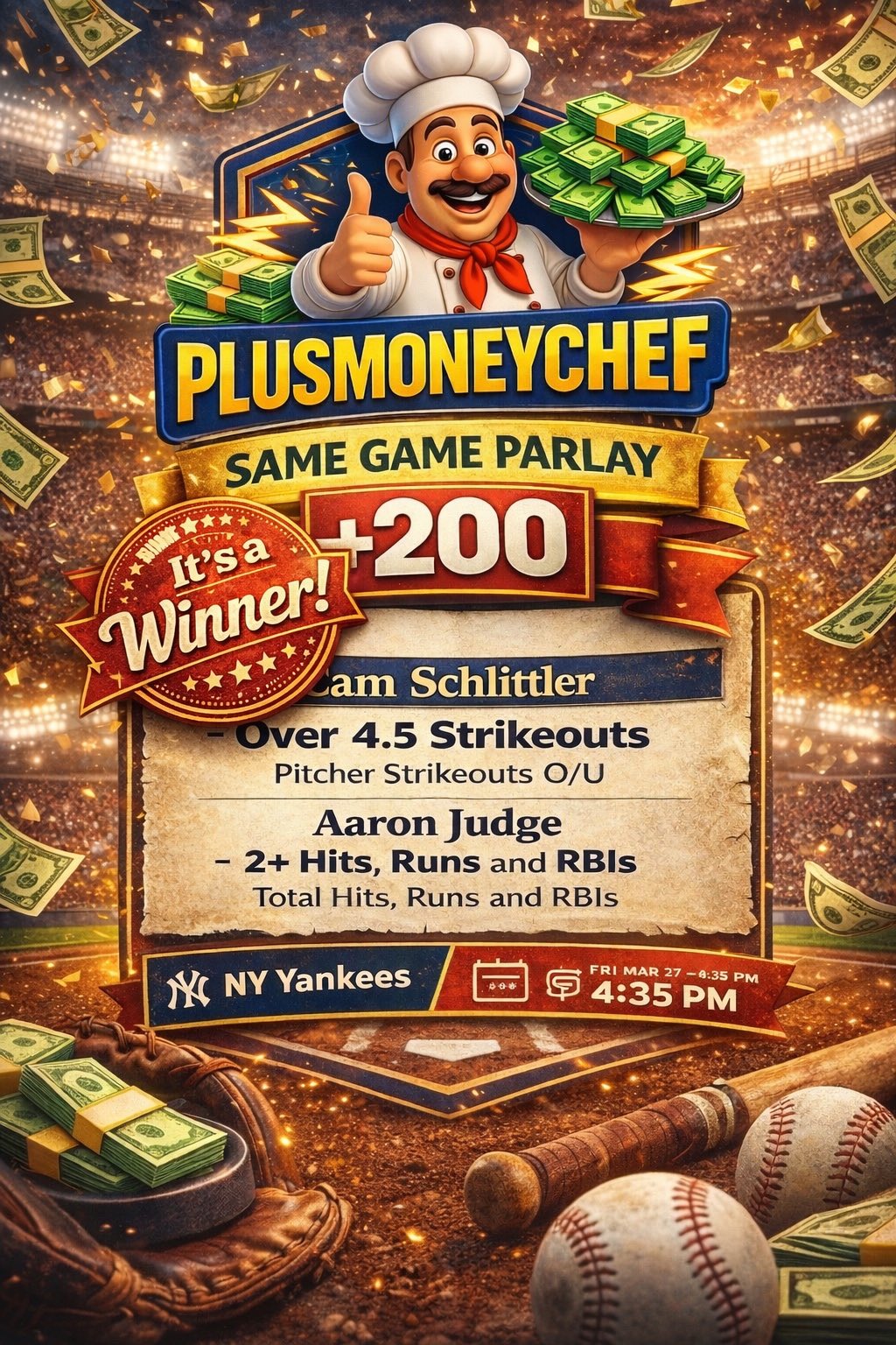 3 ❤️’s and I’ll drop another #MLB same game parlay for a night sweat 😅