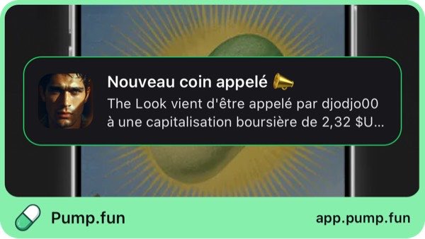 Je viens de mentionner The Look à 2,32 $USk de capitalisation. Suivez-moi sur l'application pump.fun pour recevoir des alertes instantanées : join.pump.fun/HSag/5jehw24z