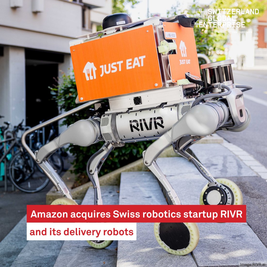.@amazon acquires Zurich robotics startup @rivr_tech 🤖 The ETH spin-off builds four-legged delivery robots that climb stairs & carry 60 kg.