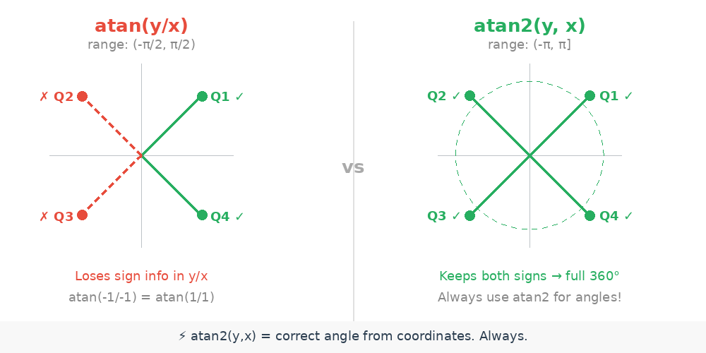 atan(y/x) ❌ vs atan2(y, x) ✅