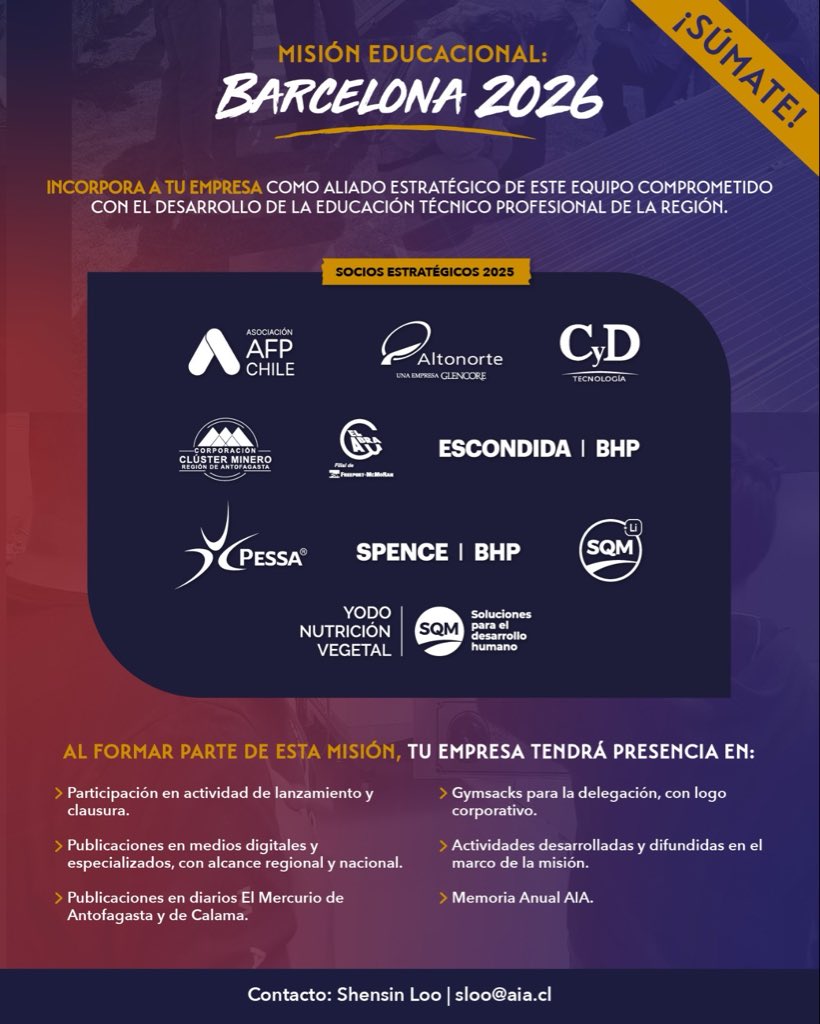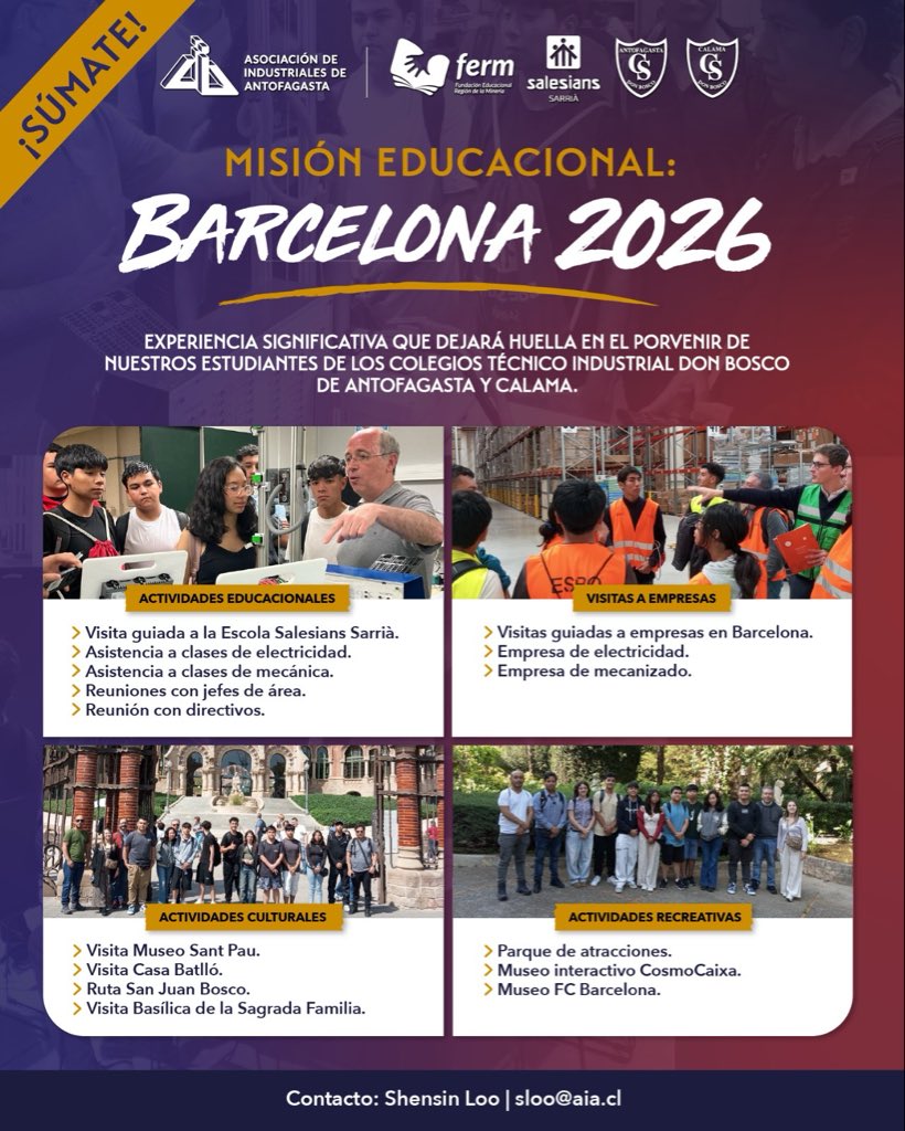 🚀 Conoce más sobre la Misión Educacional Barcelona, y suma a tu empresa al desarrollo profesional de los jóvenes de la Región de Antofagasta. ¡Participa!