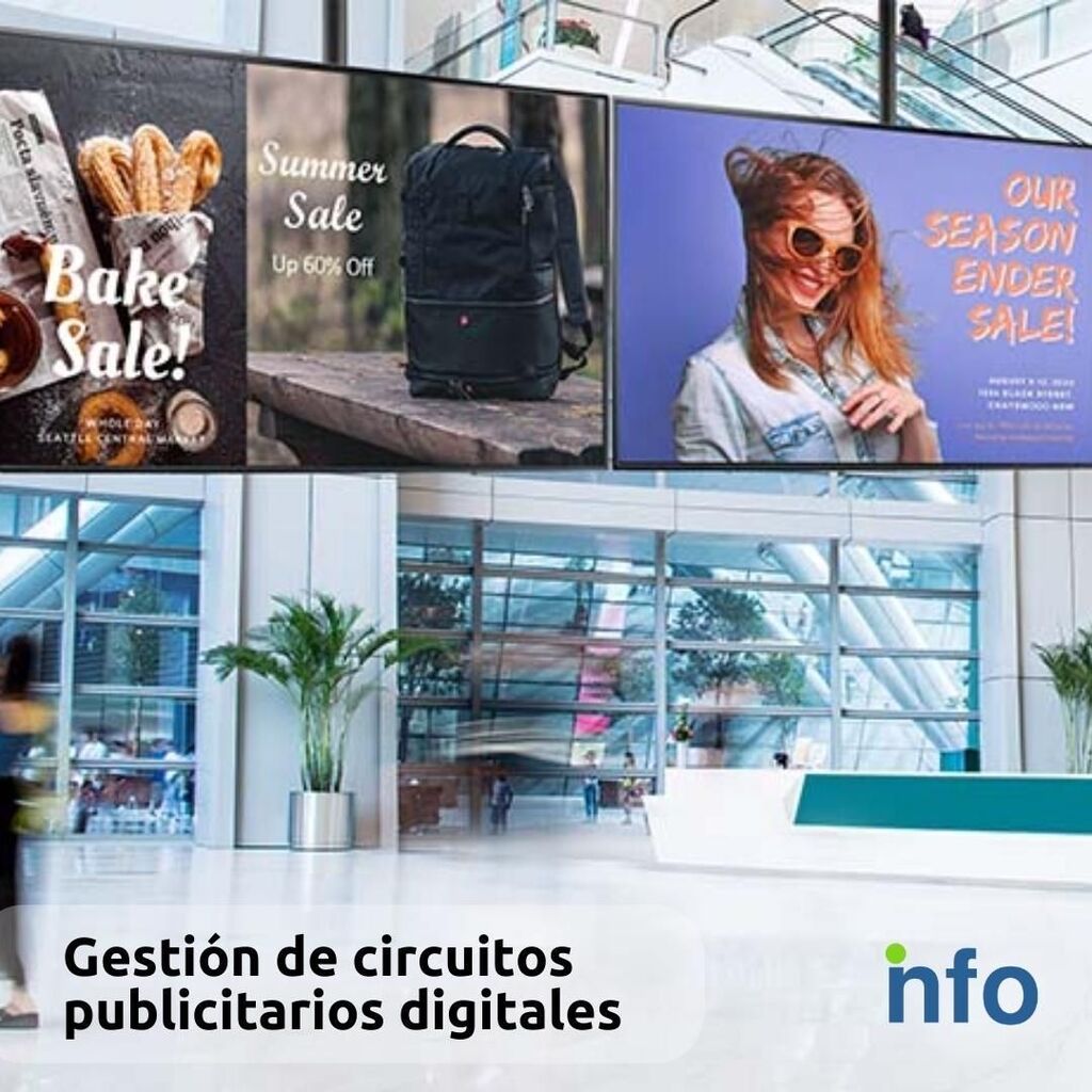 Info es la plataforma como servicio para la implementación y gestión en la nube de circuitos publicitarios digitales, compatibles con cualquier tipo de pantalla de video por medio de un pequeño terminal AndroidTV. Conozca los detalles aquí info-signage.com