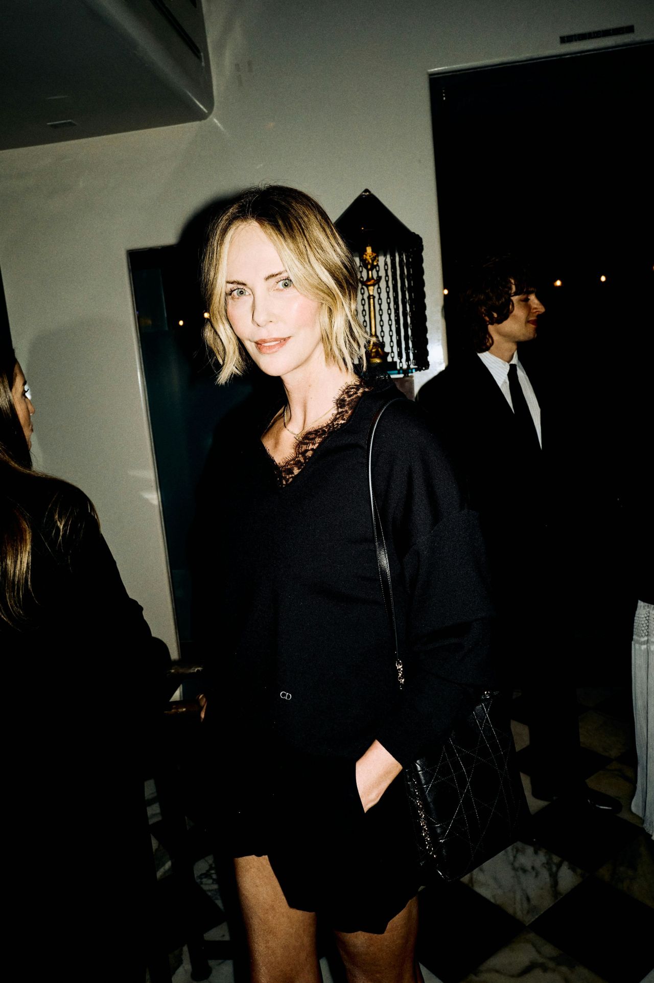 #CharlizeTheron apostó por la estructura y la sobriedad en la fiesta previa a los #PremiosÓscar2026 organizada por la revista #W y #Dior. La actriz estadounidense de origen sudafricano optó por un minivestido negro de silueta minimalista.