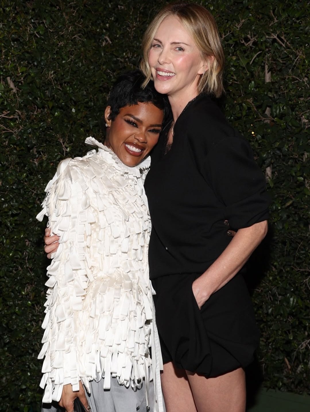 Unas sonrientes #TeyanaTaylor y #CharlizeTheron durante la cena íntima organizada en Mr. Chow por la revista #W y #Dior, antes de la entrega de los #PremiosÓscar2026, el 12 de marzo de 2026 en Beverly Hills, Los Ángeles, California.