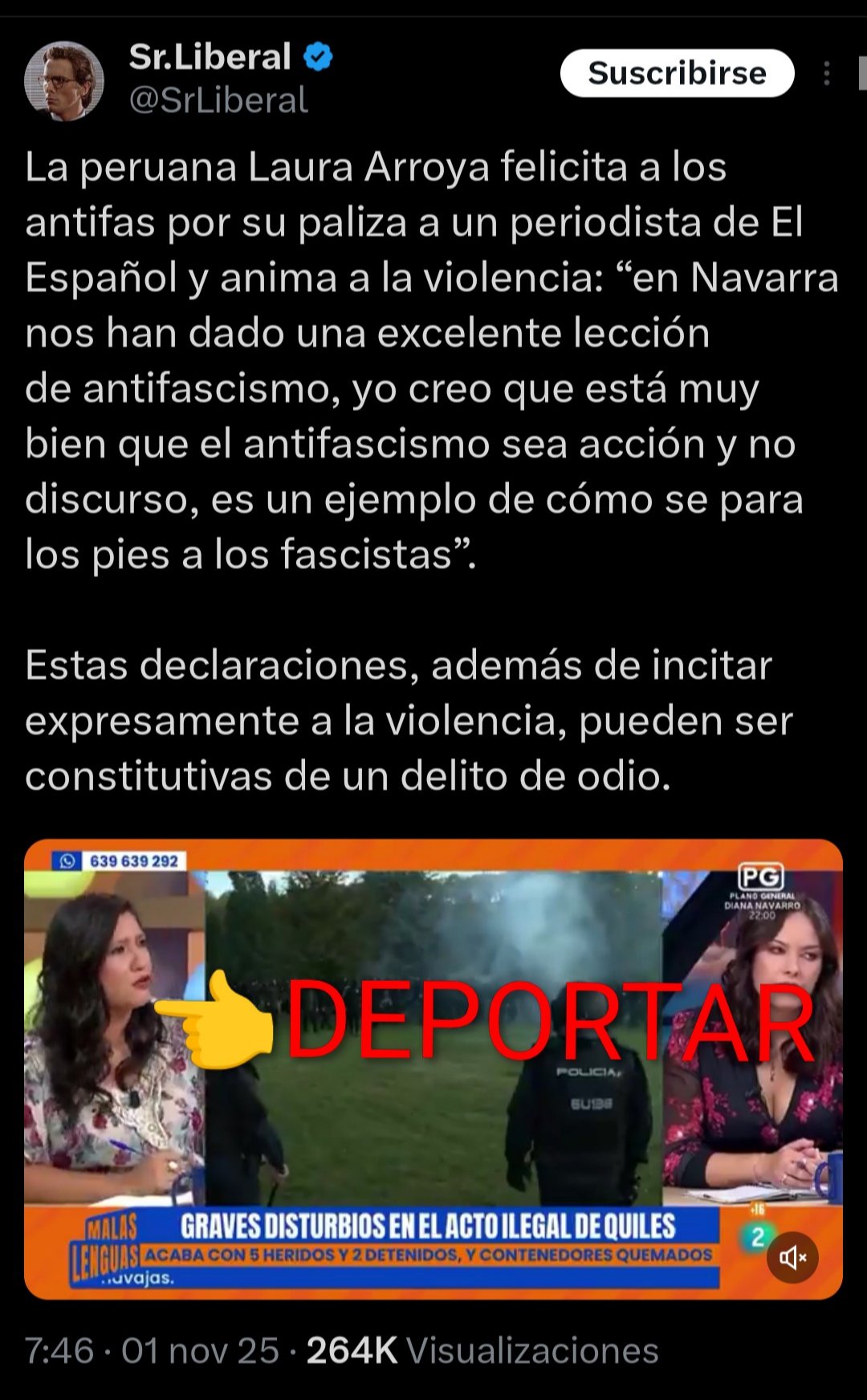 Estando las P€D0F|L∆$ N∆Z|$, DIVULG∆D0R∆$ DE BULOS, INCITAD0R∆$ DE ODIO Y V|0L€N©|∆ @SarahPerezSanta @menoscanas debe ser compañera de polígono.