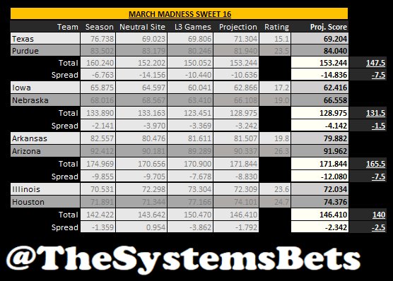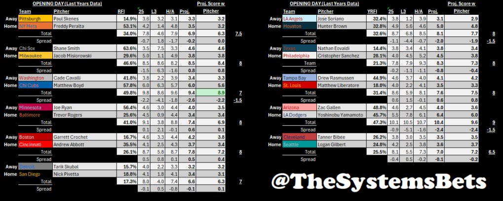 💡Since we figured since it's MLB opening weekend, March Madness Sweet 16/Elite 8 weekend, and NBA always running, were going to give you a glimpse into all 3 of our daily projection sheets for today 📊