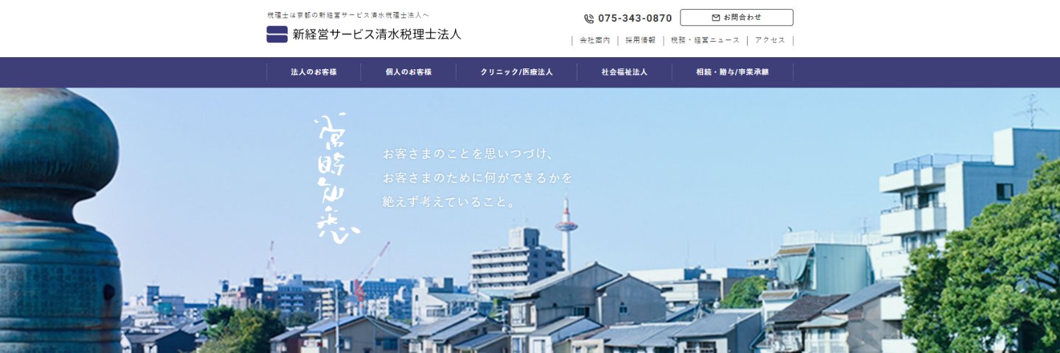 新経営サービス清水税理士法人の公式Xアカウントです。 税務のお知らせや京都での日常など呟きます。 個人創業以来69年という歴史を持つ弊社をお気軽にフォローしてください。
