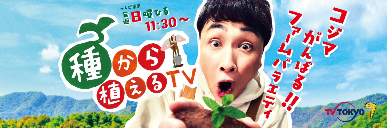 コジマがんばる!ファームバラエティ番組「種から植えるTV」 テレビ東京にて毎週日曜日11:30~11:58放送! Tverなどで見逃し配信しております! アンジャッシュ児嶋一哉がゲストとゼロから農業を学び、番組の畑で種から野菜を育てます🍅🥕 公式SNS規約⇒