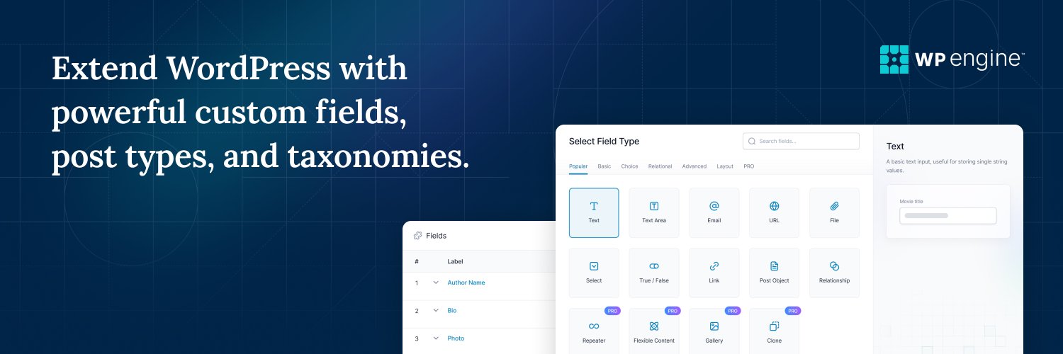 ACF® is a powerful plugin for WordPress developers giving control of custom content with fields, post types & taxonomies. From @dliciousbrains & @wpengine